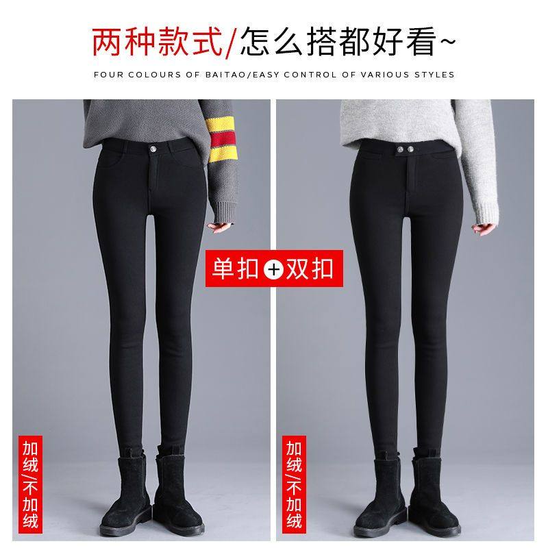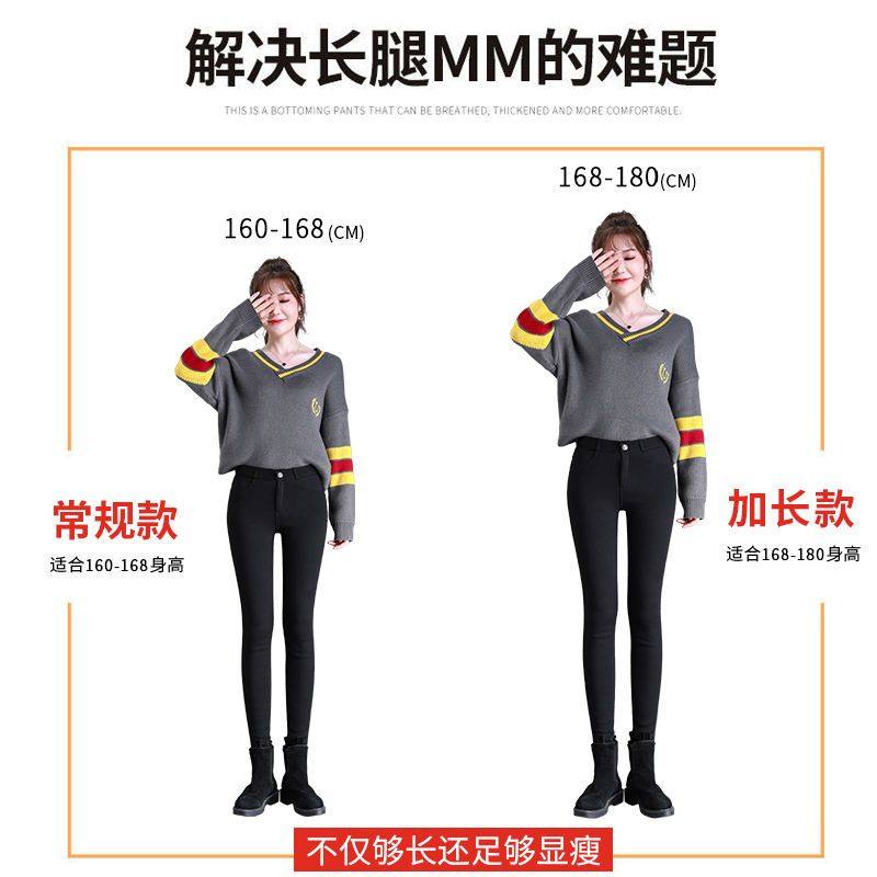 加长女裤高个子加绒黑色裤子紧身高腰加厚保暖打底裤女外穿小脚裤