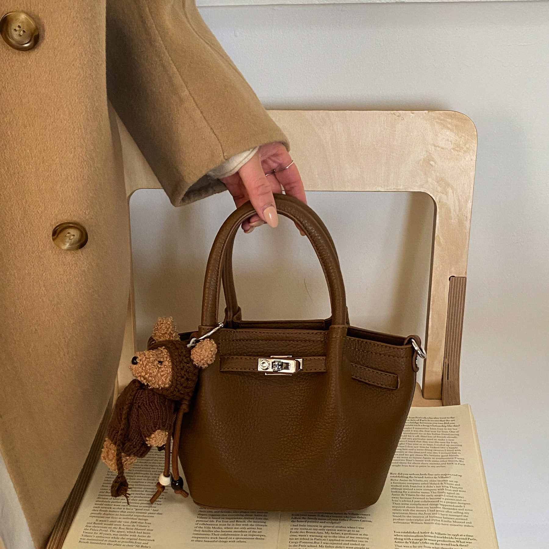 素韵格高级感荔枝纹斜挎手提包