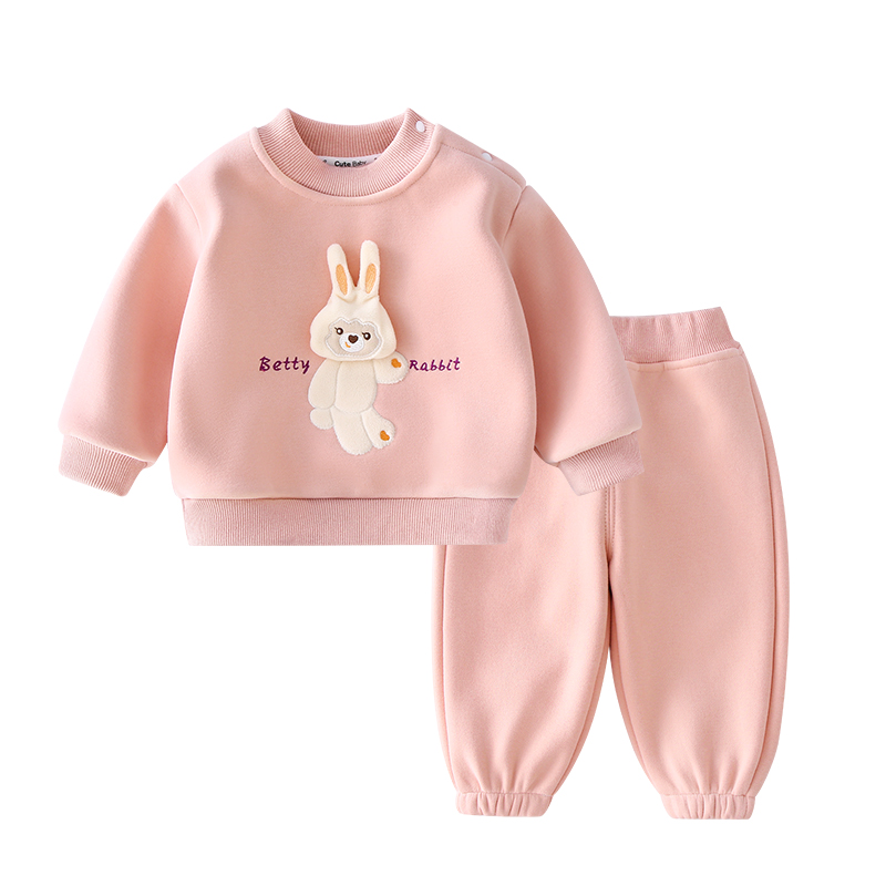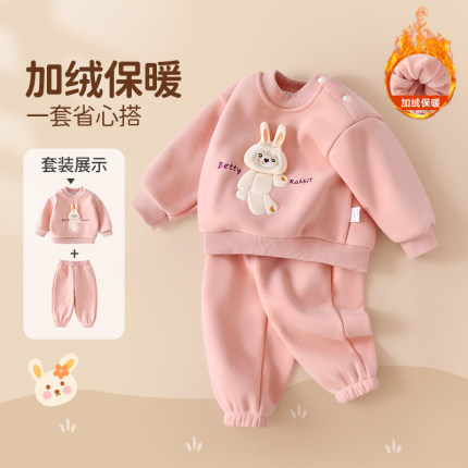 宝宝加绒加厚卫衣套装男女儿童保暖外穿秋冬季婴儿两件套新年衣服