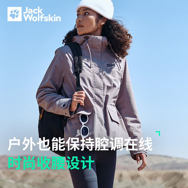 JackWolfskin狼爪冲锋衣女秋冬季DELHI收腰防水抓绒三合一5120243