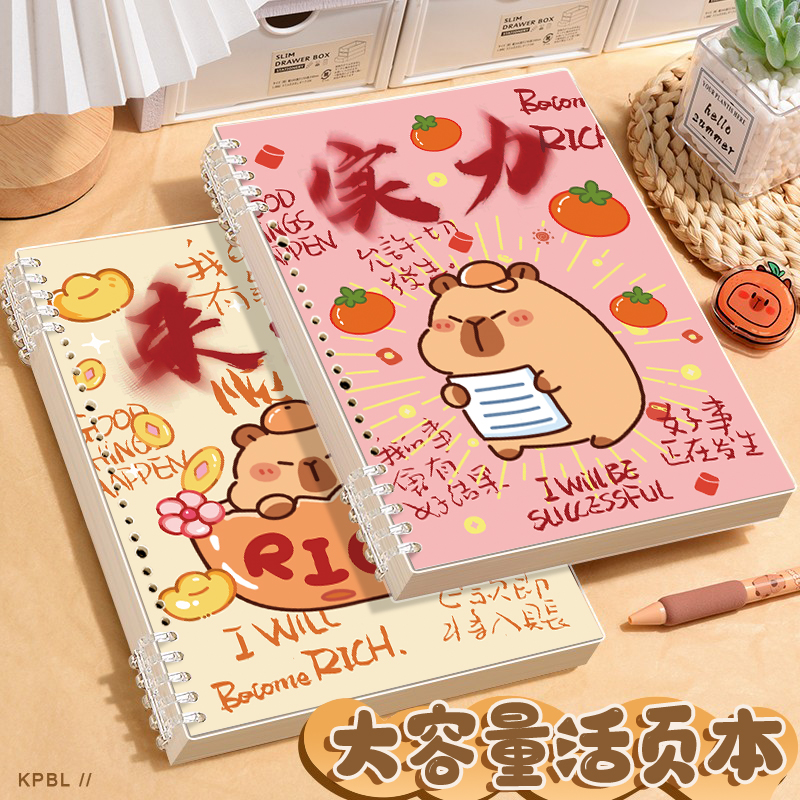 卡皮巴拉ins高颜值学生笔记本不硌手活页本水豚权威抽象本子初高中生记事本考研专用空白网格手账本日记本