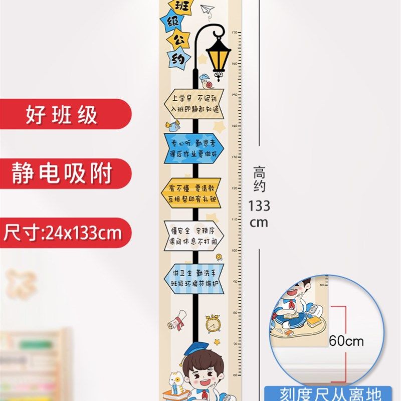 身高贴自粘宝宝量身高尺卡通小孩测量神器儿童房间壁纸装饰可移除