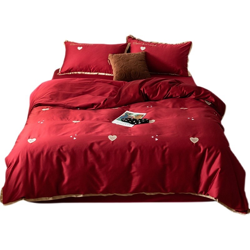 简约婚庆四件套纯棉大红色婚房床单被套全棉结婚床上用品新婚喜被