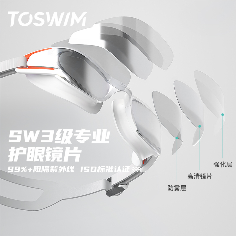 TOSWIM防雾防水高清男士泳镜