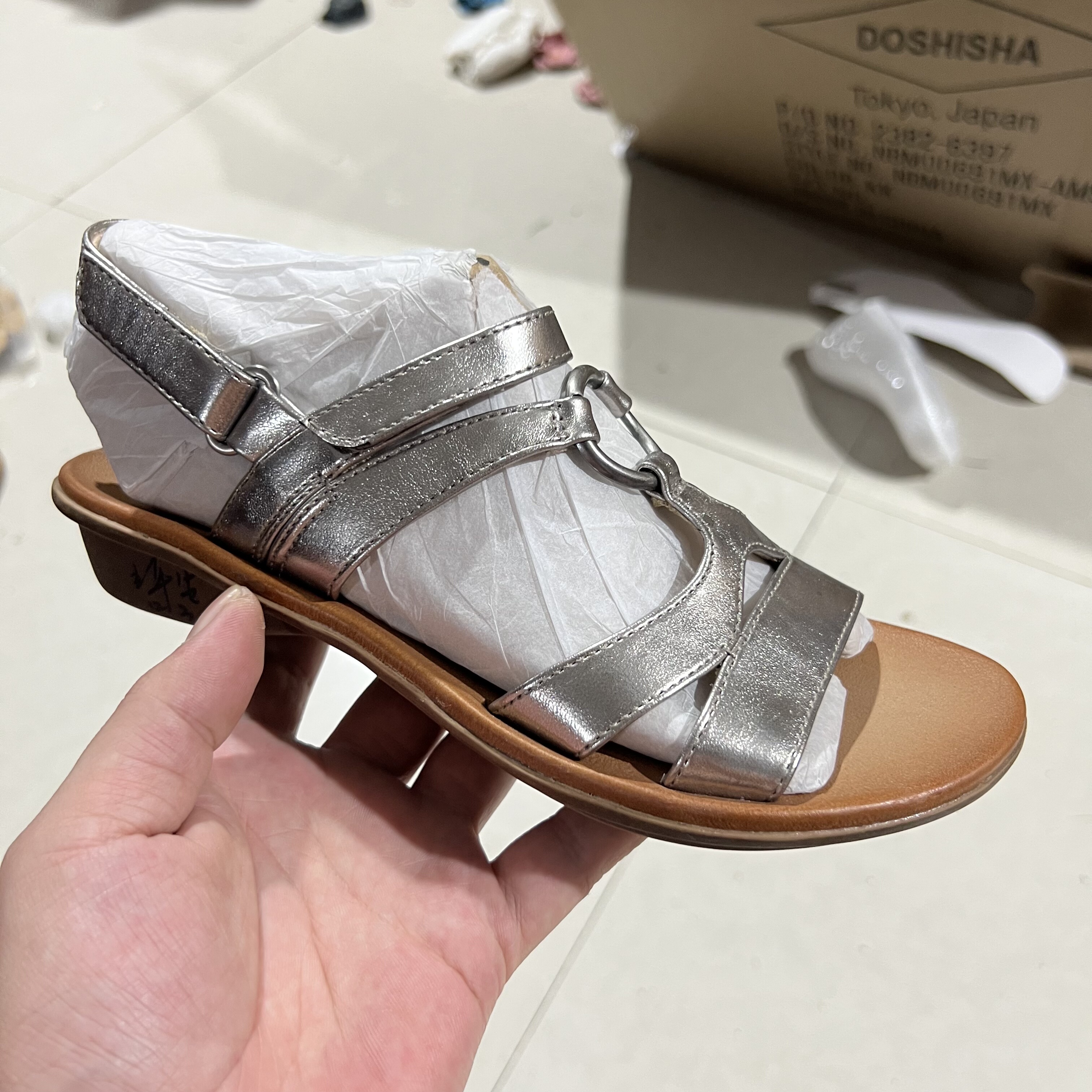 瑕疵品夏季革面波西米亚凉鞋女坡跟不累脚防滑软底魔术贴罗马凉鞋