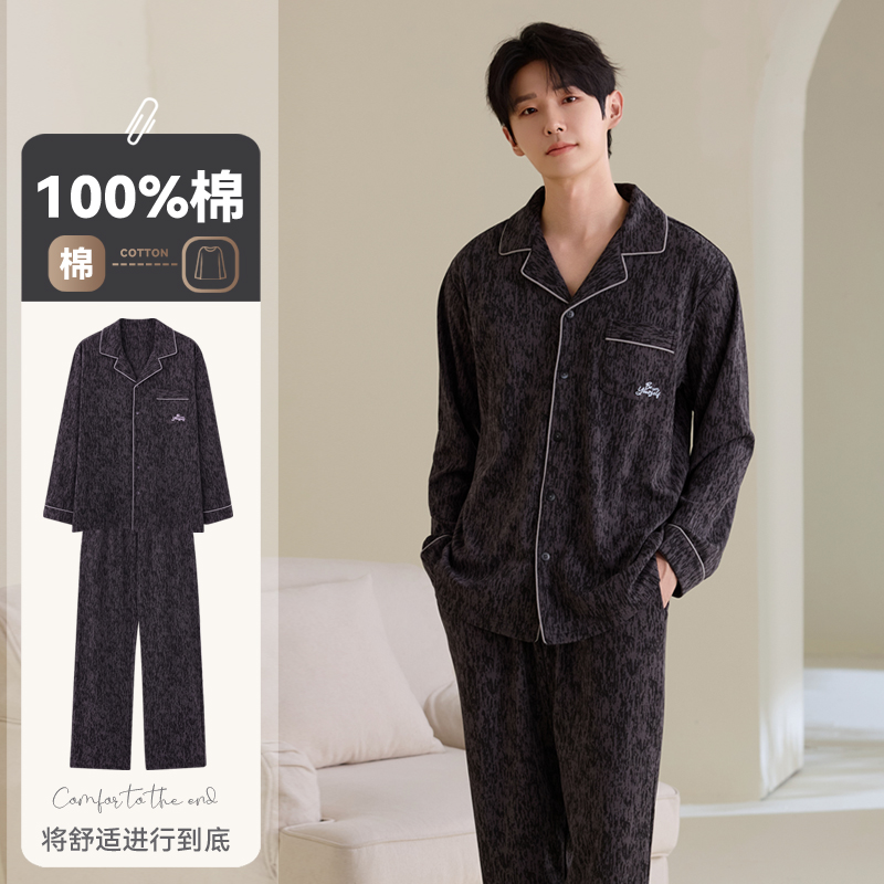 浪莎春秋季睡衣男款秋冬款长袖青少年家居服2025新款男士纯棉套装