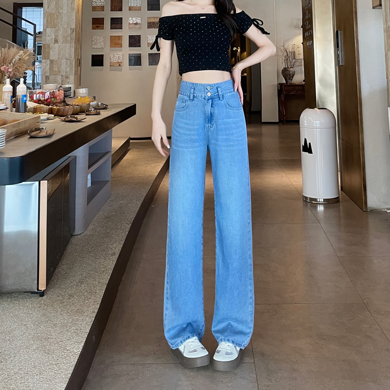白色天丝牛仔裤女夏天薄款2025新款高腰宽松垂感冰丝阔腿拖地裤子