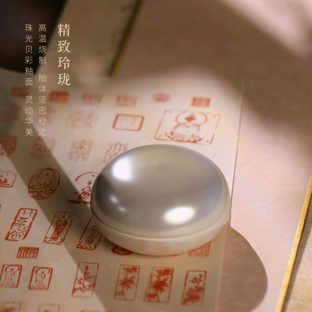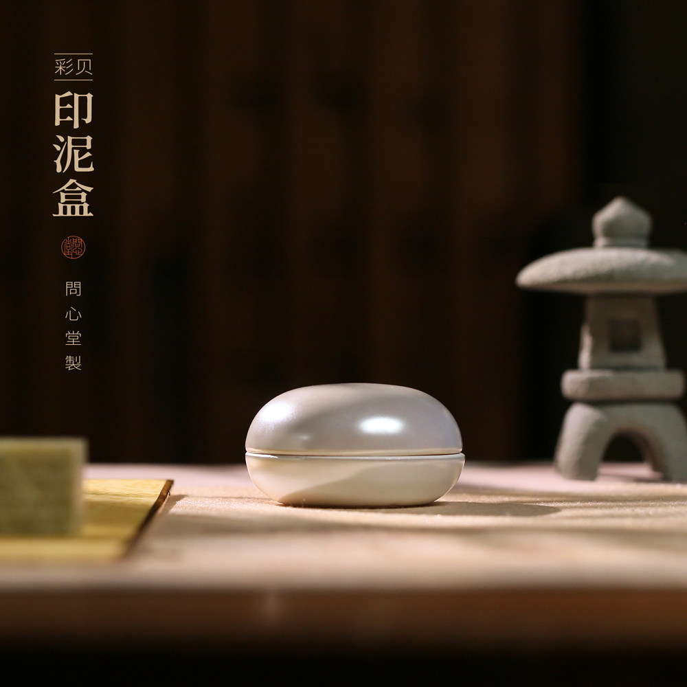 问心堂彩贝印泥盒文房四宝无胶圆形印章盒女生文房四宝中式摆件精致高颜值散装朱砂印泥篆刻国画书法印泥盒