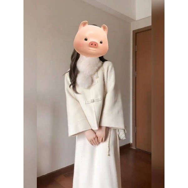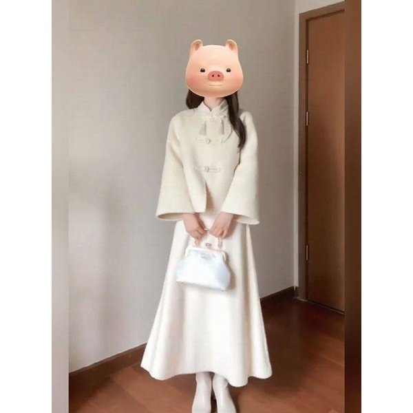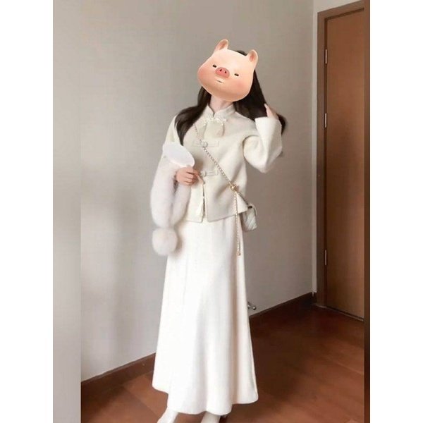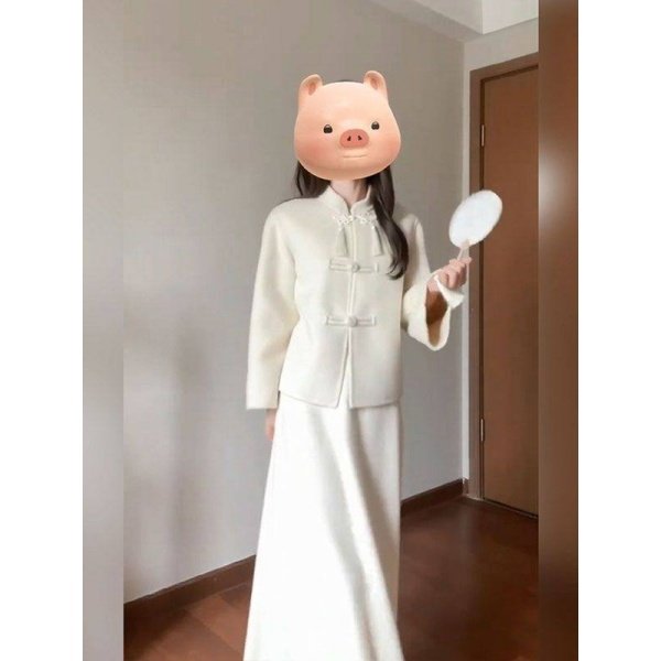 大码胖MM新中式国风立领盘扣显瘦外套冬季新款高腰百搭半身裙套装