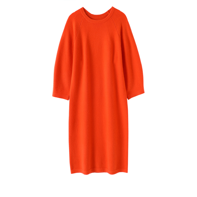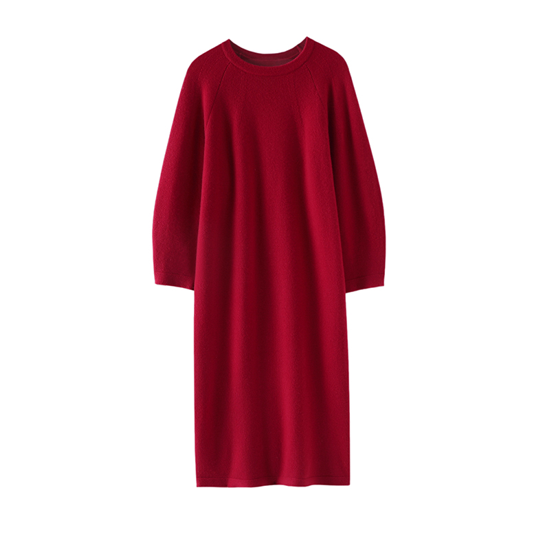精致不渝!时尚气质!加厚羊绒衫女中长款纯羊绒毛衣圆领连衣裙子