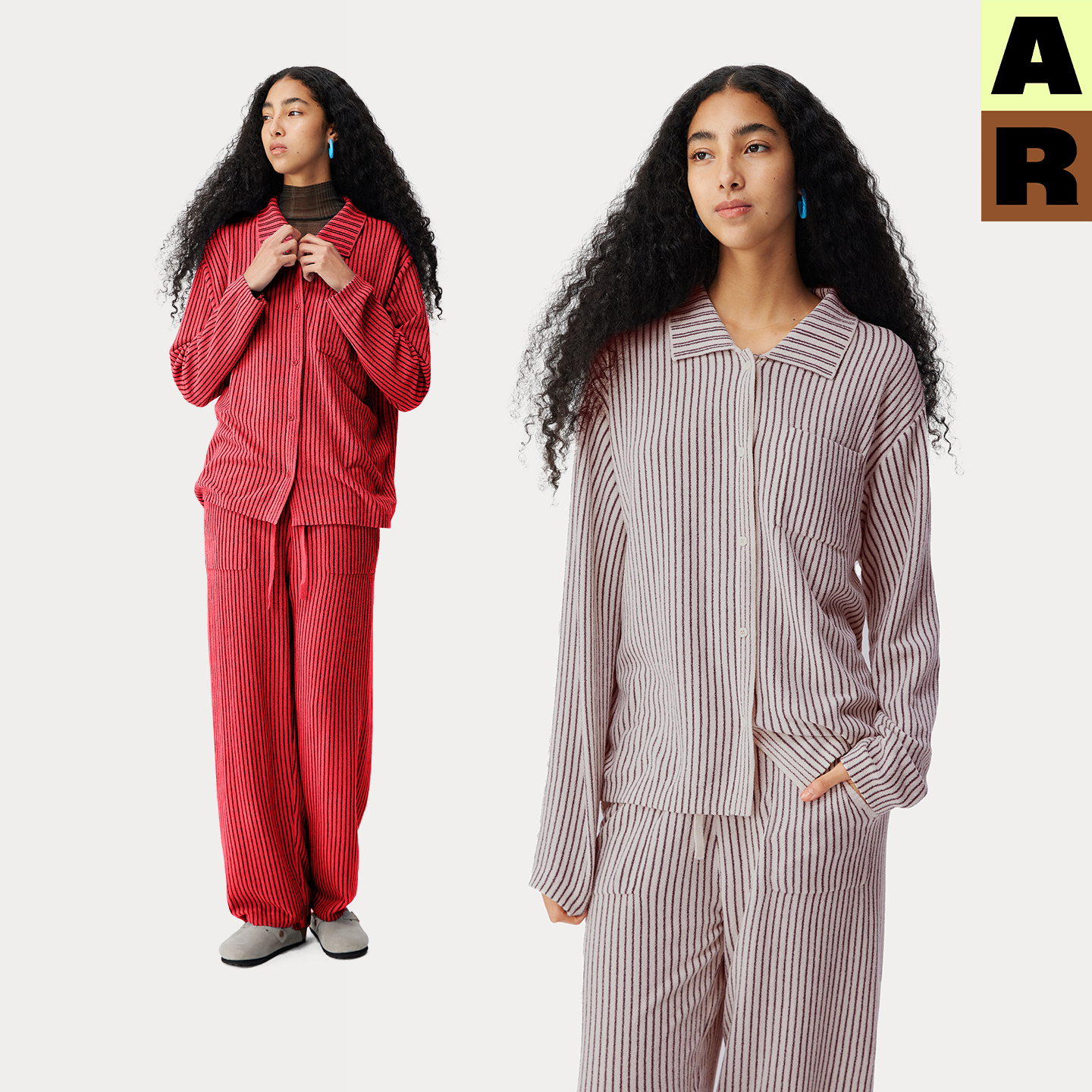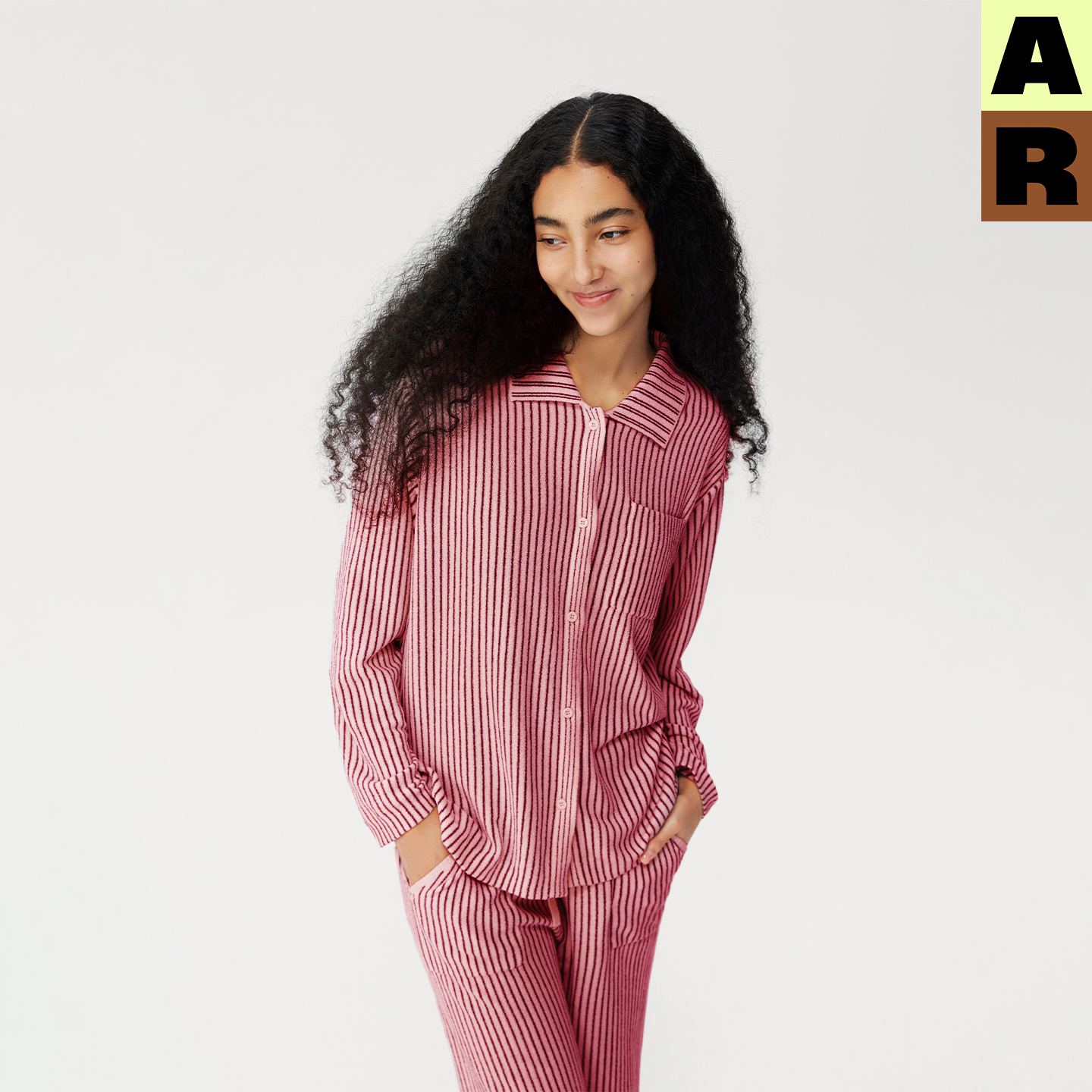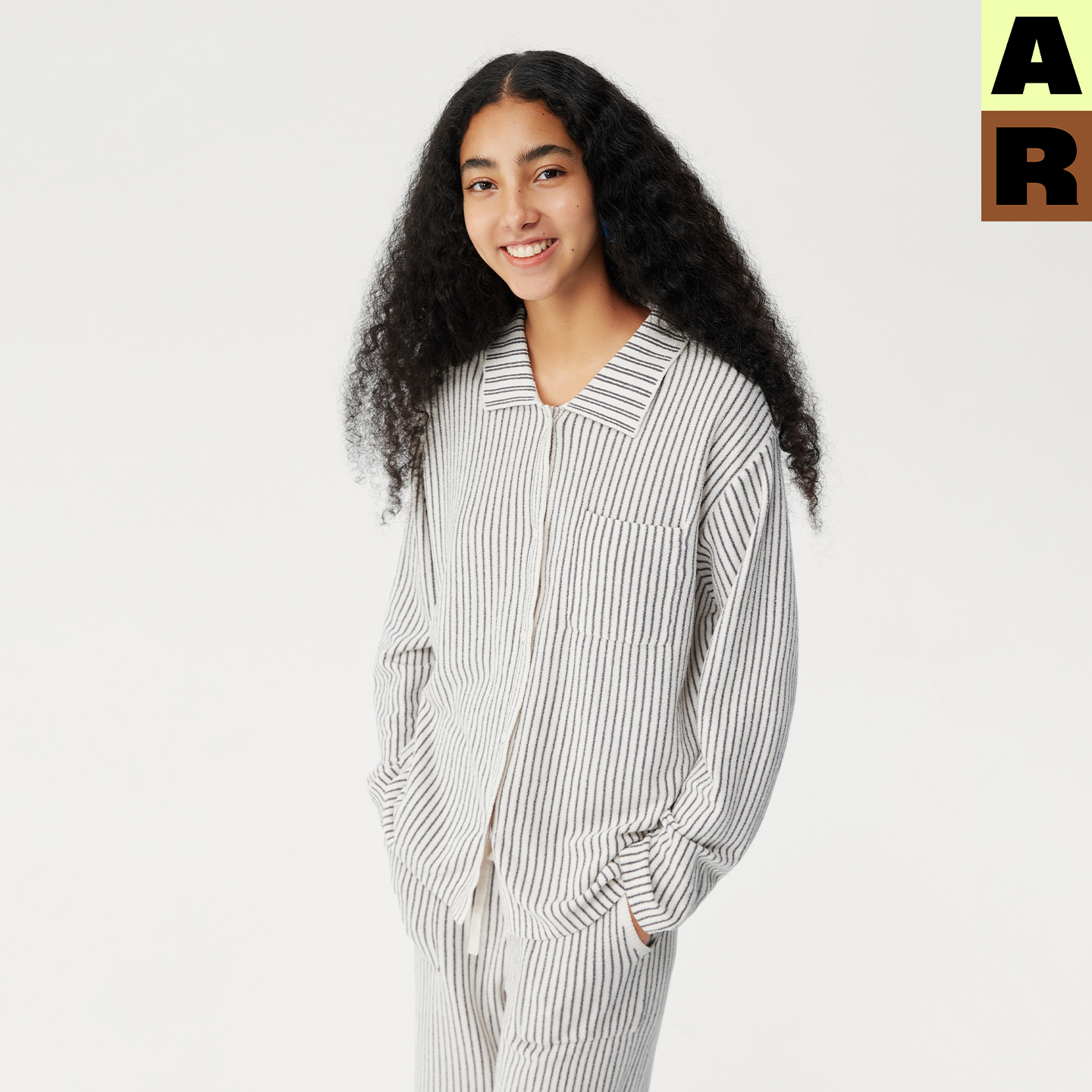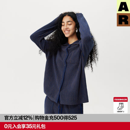 「董生活同款」AR条纹开衫高支半边绒家居服套装保暖休闲睡衣女
