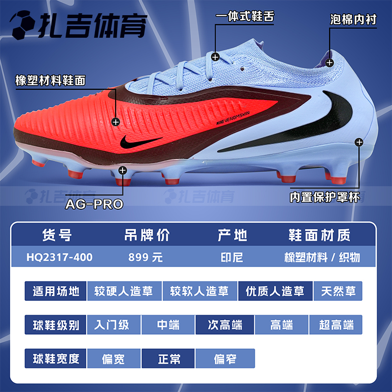 扎吉体育Nike耐克PHANTOM 6次高端AG-PRO人草男足球鞋HQ2317-400