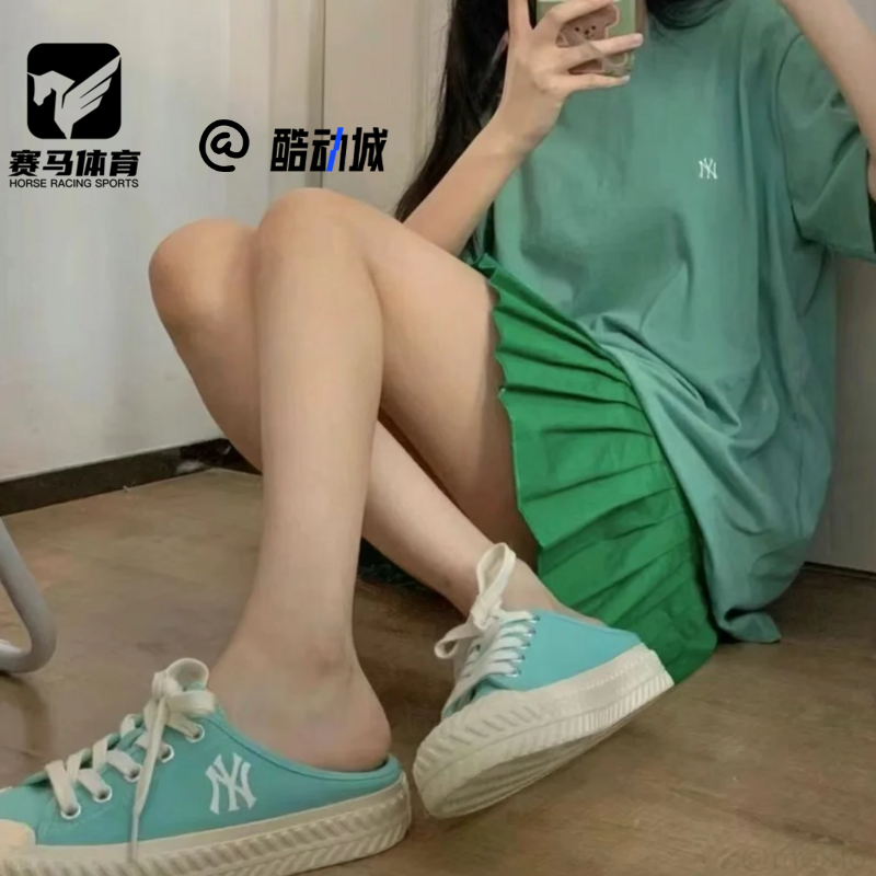 MLB Playball Mule绿色女子一脚蹬休闲半拖帆布鞋32SHS1111-50T