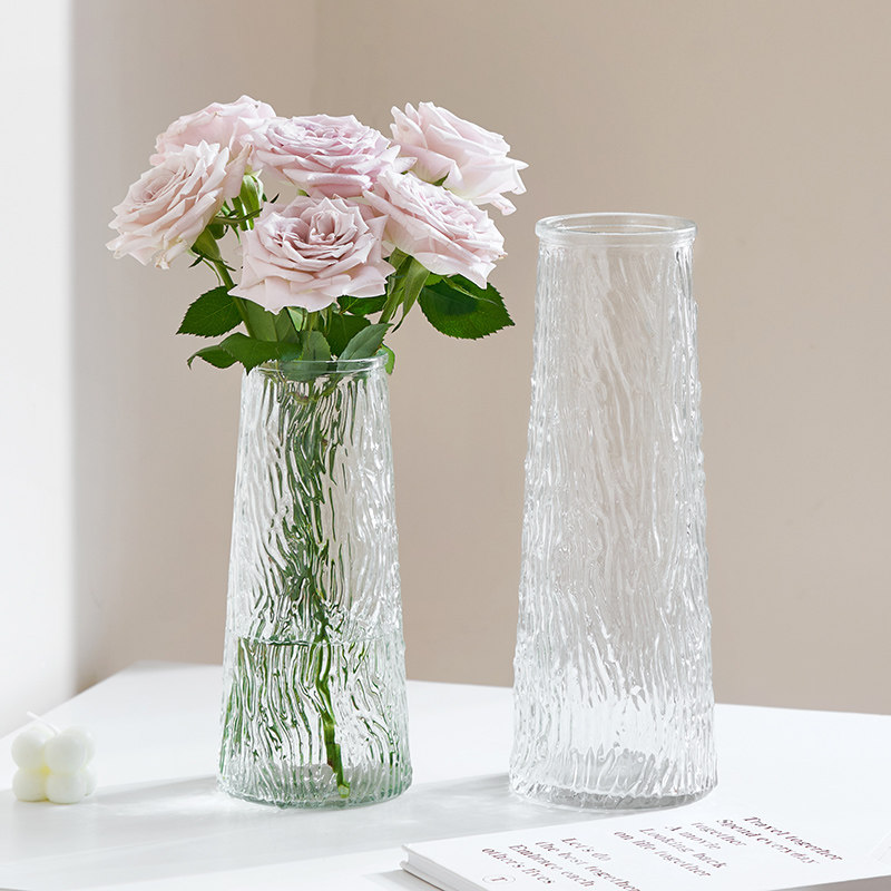 ins风高级感冰川直筒花瓶摆件玻璃透明简约水培富贵竹客厅装饰品