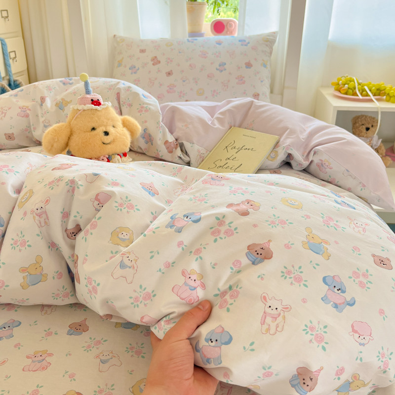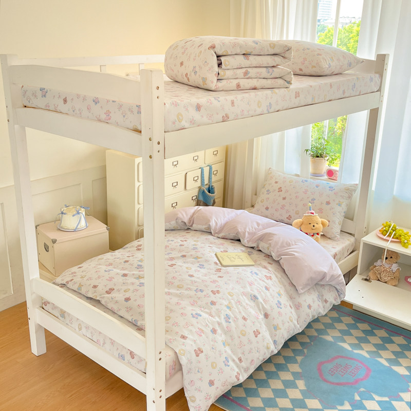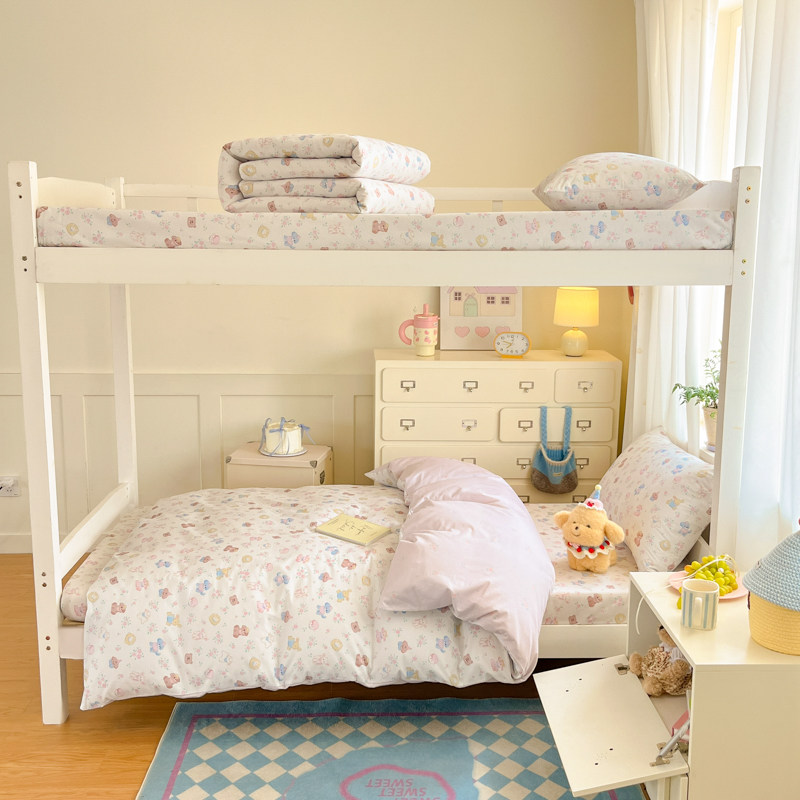 全棉女童1米35床品床笠款1米2床上三件套小清新四件套儿童男生