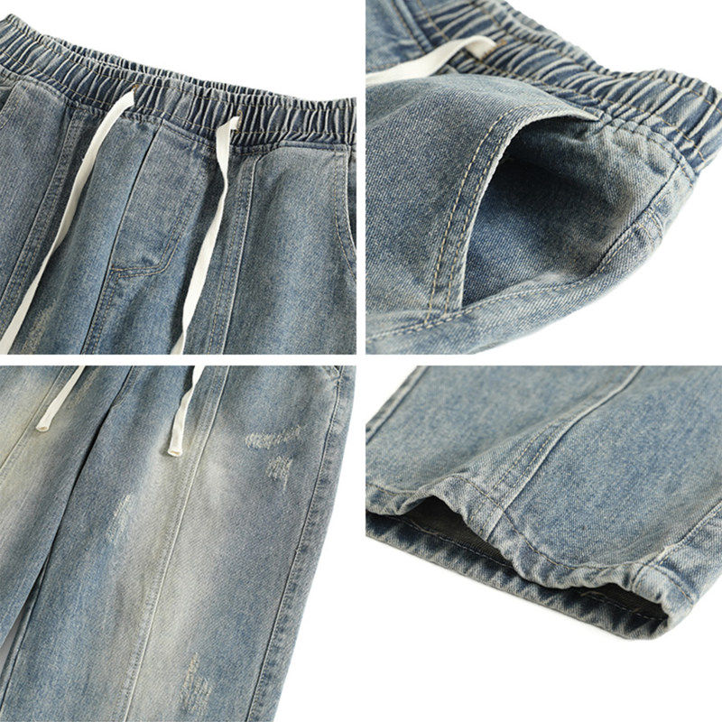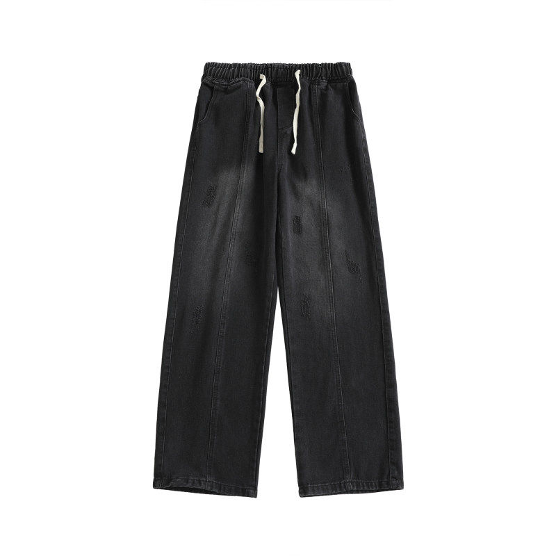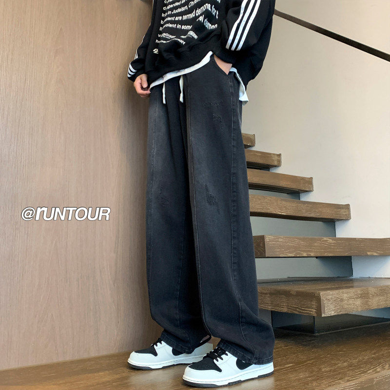 美式复古牛仔裤男士春秋款2024新款高街水洗阔腿宽松休闲微喇长裤
