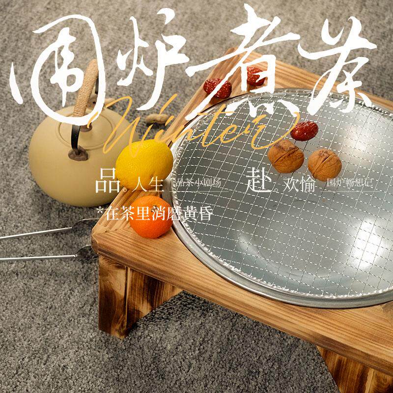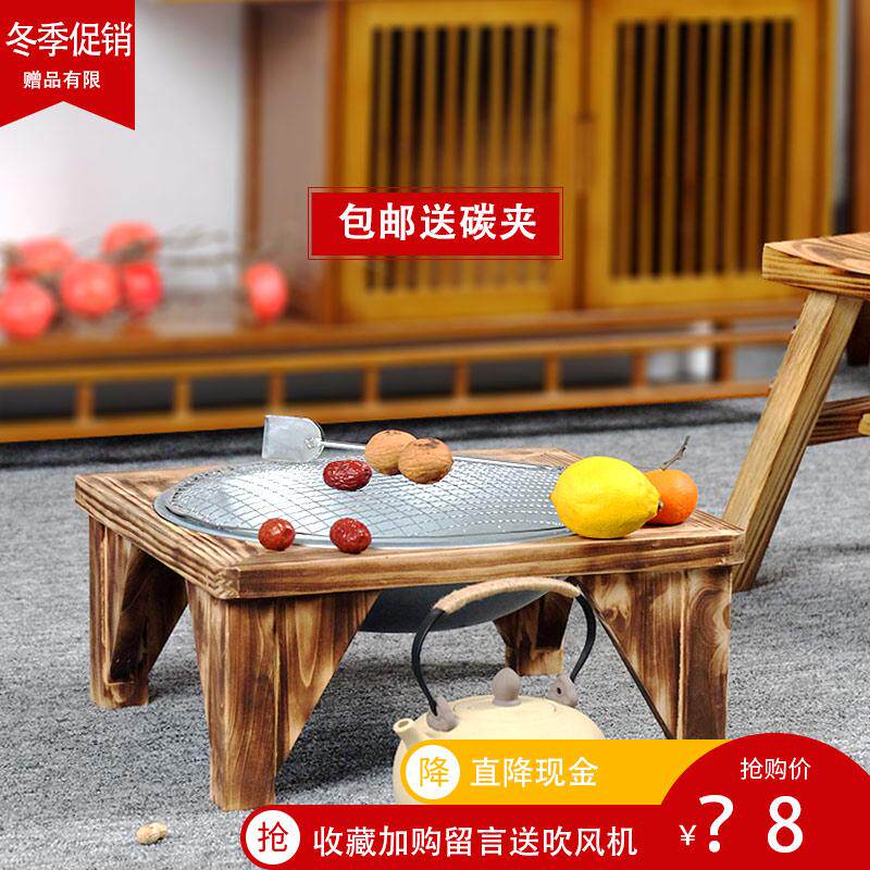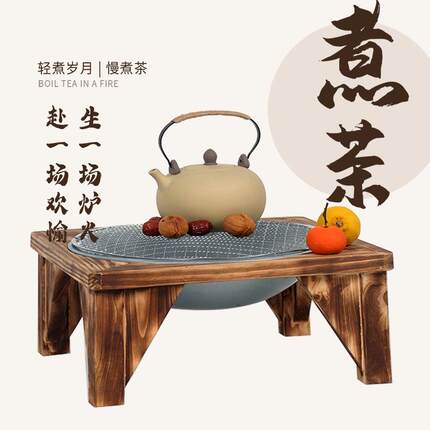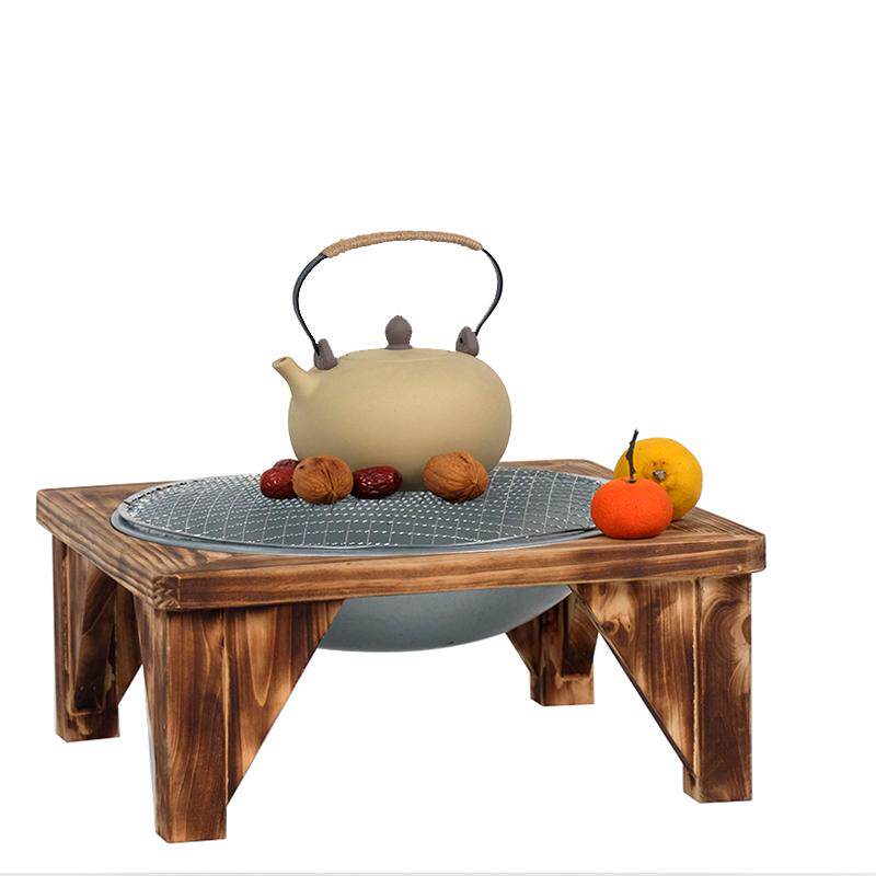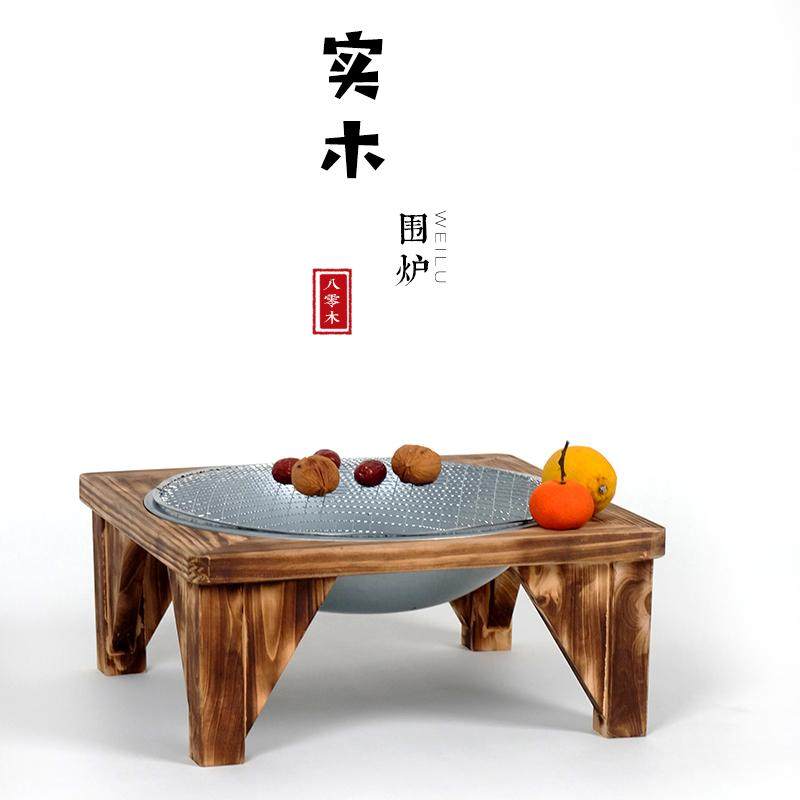 实木围炉煮茶老式庭院小炉子户外冬季取暖实木铸铁烤火盆防烫架子