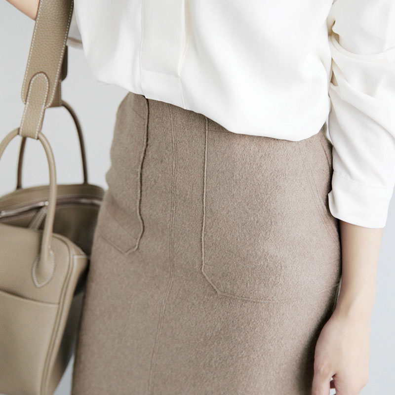 半身裙毛呢秋冬2021ol包臀开叉