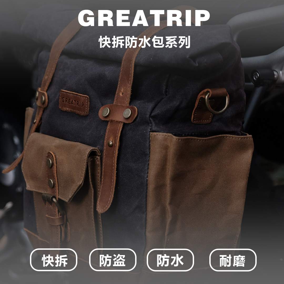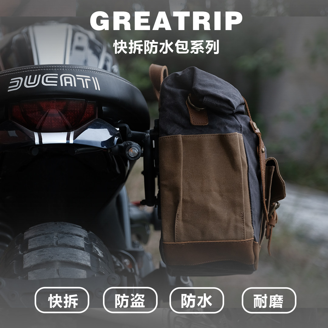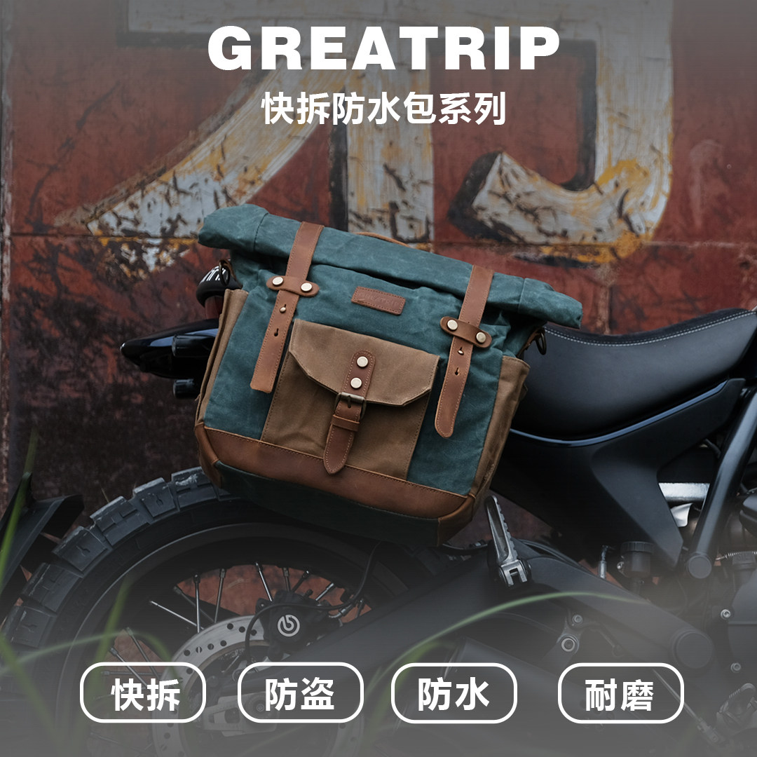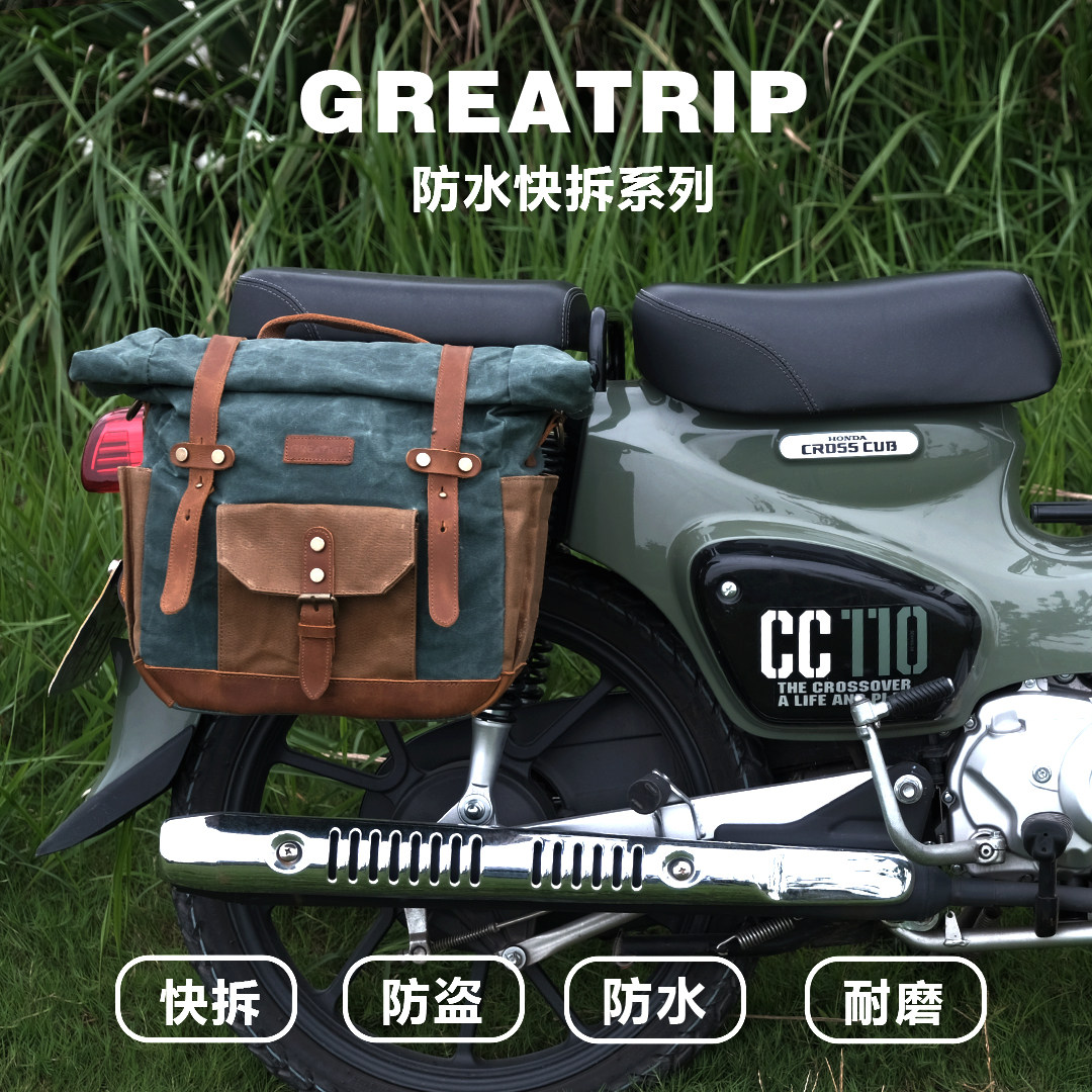 慕旅15升复古油蜡牛皮防水快拆边包侧包摩托车防水真皮哈雷凯旋