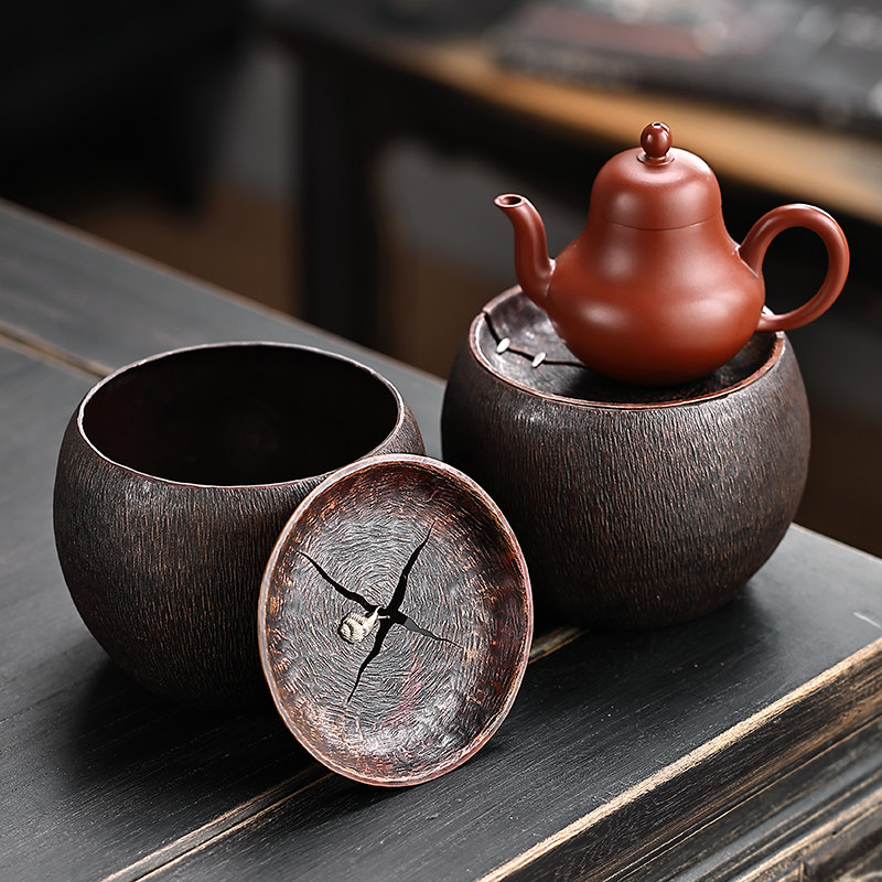 中式复古铜建水茶洗茶渣缸水盂带盖家用茶水缸茶具功夫茶具零配件