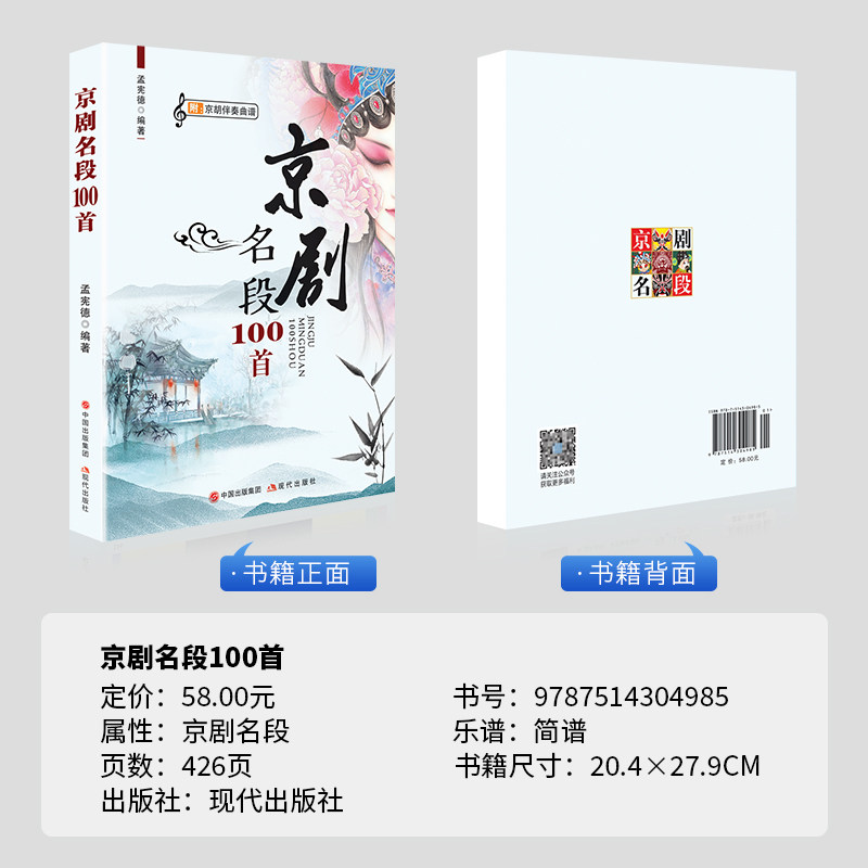 新版 京剧名段100首附京胡伴奏乐谱 传统戏部分+现代戏部分京剧一百首京剧唱段伴奏曲谱书集教程唱戏谱歌曲简谱词经典孟宪德编著
