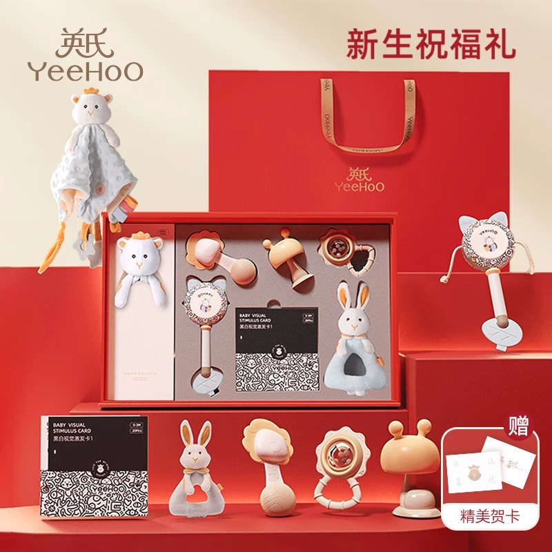 英氏新生礼盒婴幼儿拨浪鼓满月百日送礼初生宝衣服早教益智玩具礼