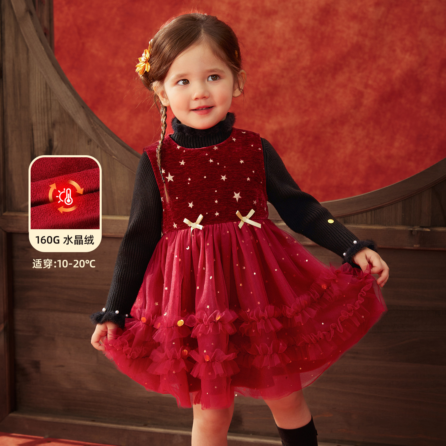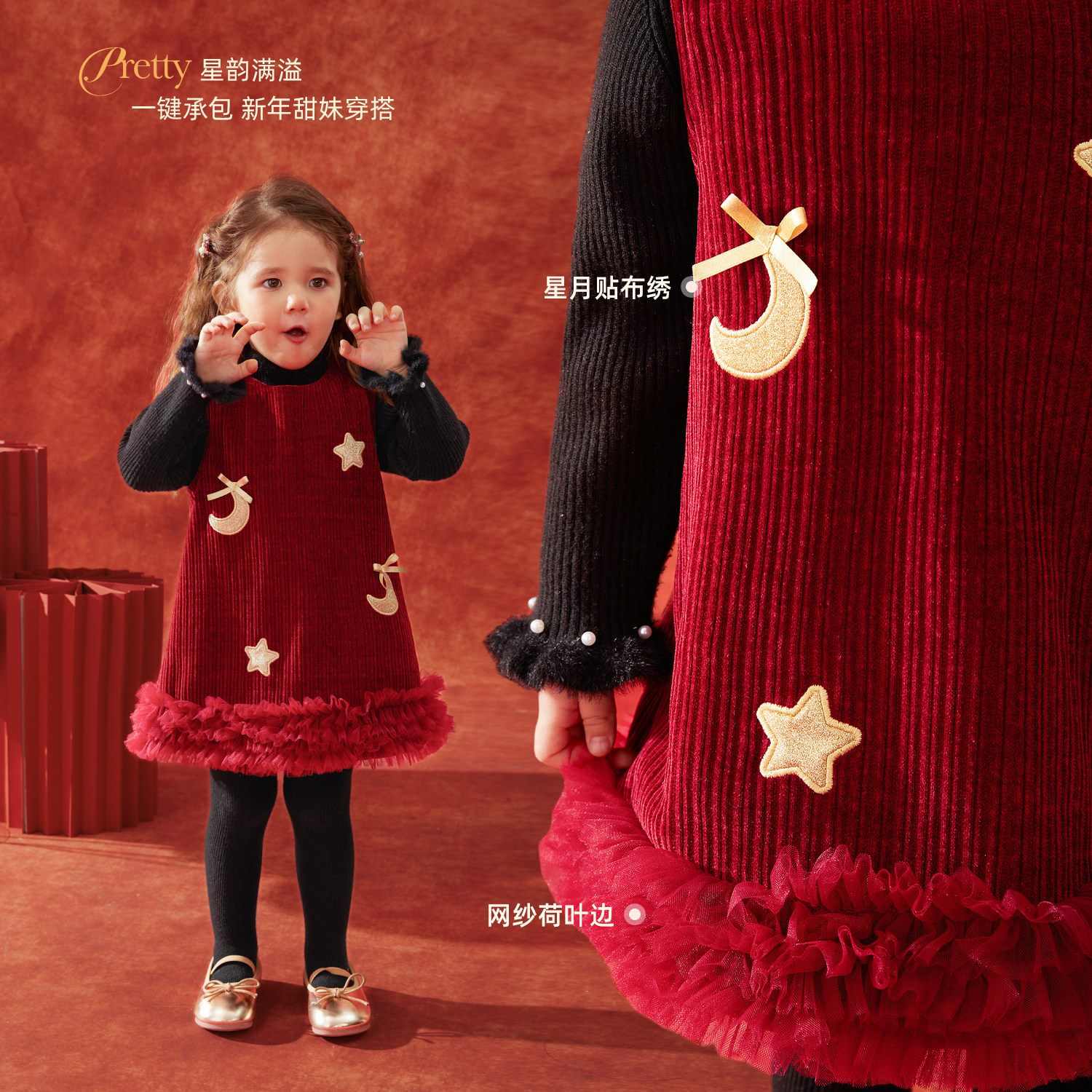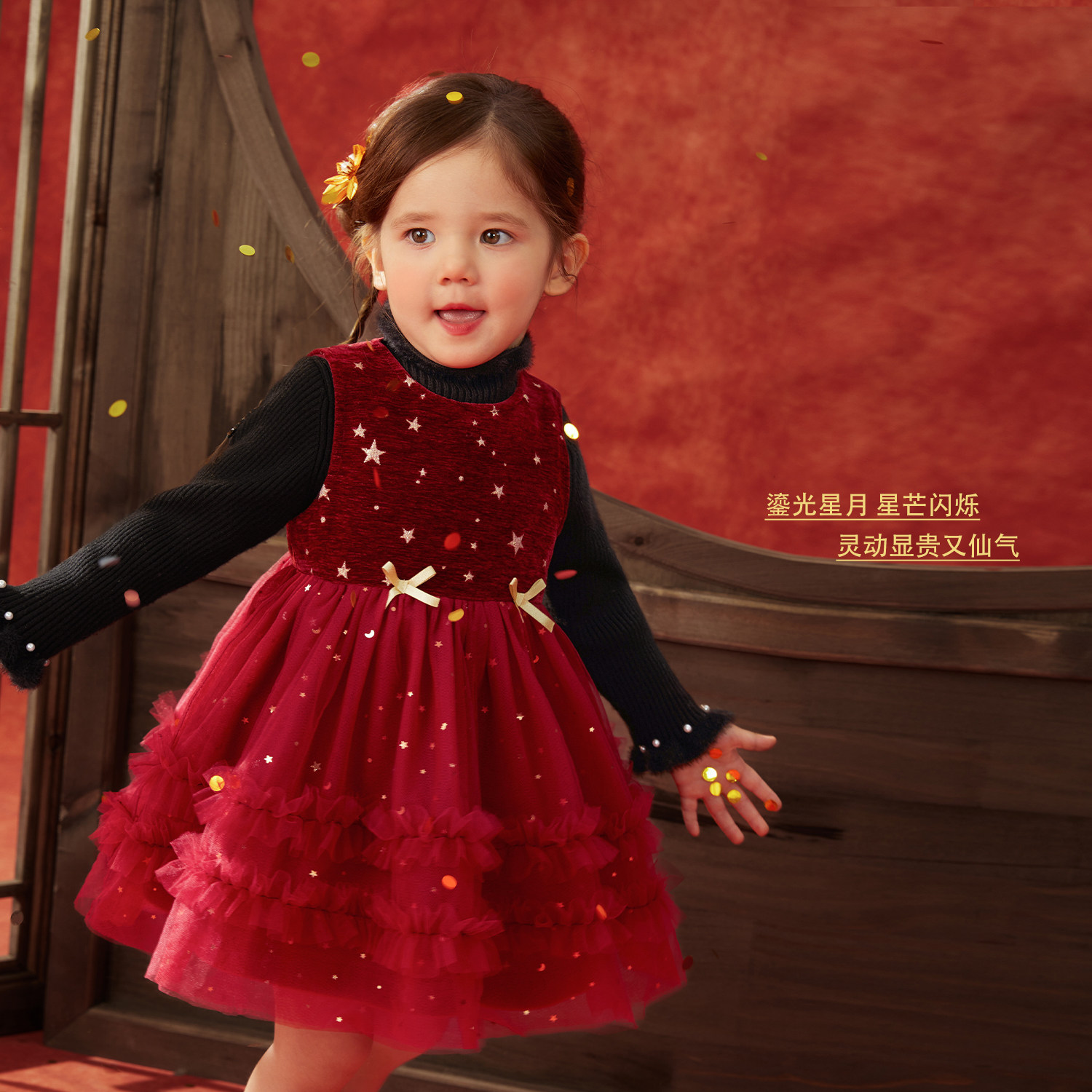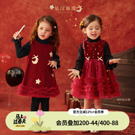 【星汉璀璨】小o爸女婴童 宝宝红色连衣裙背心裙新年拜年服公主裙