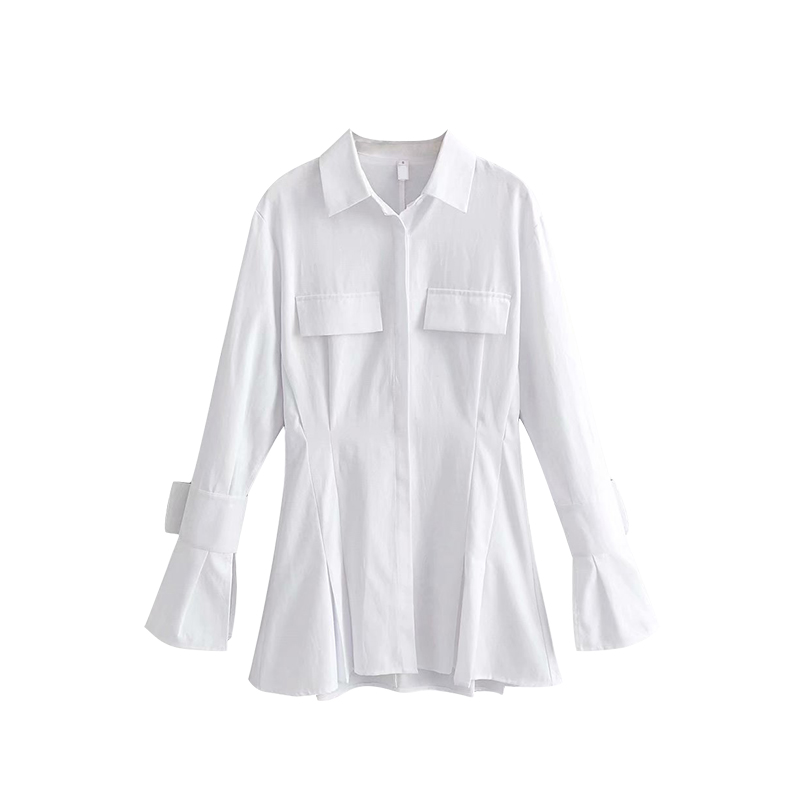 liviahome欧美ins辣妹褶皱收腰白色衬衫裙长袖连衣裙女小众设计感