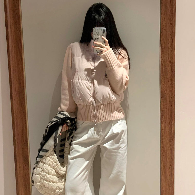 修身显瘦针织拼接羽绒棉服女冬季小个子今年流行洋气爆款棉衣外套