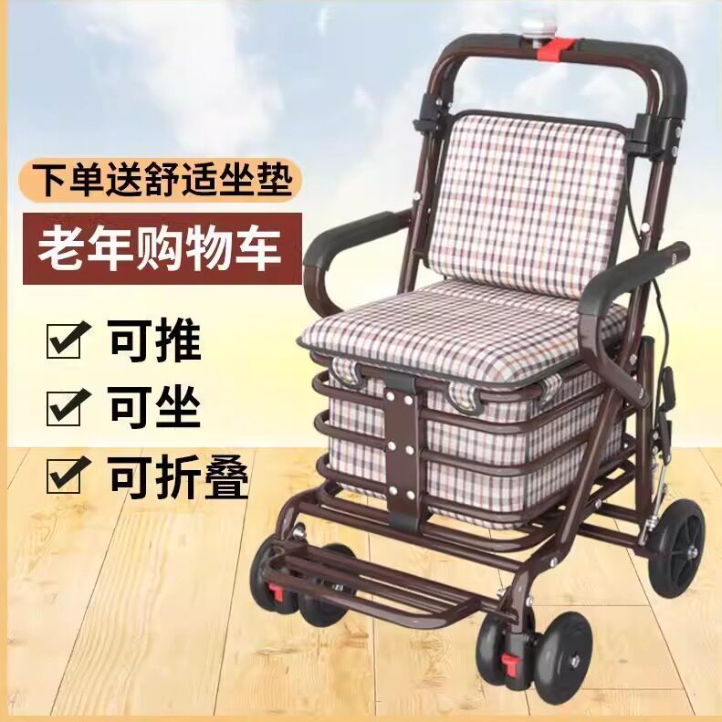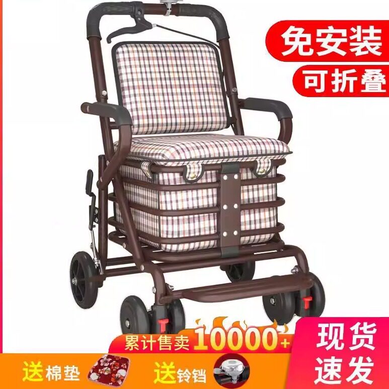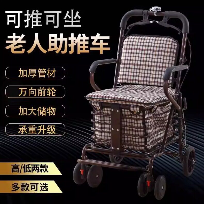 老人手推车代步可坐助行器四轮折叠行走老年人坐的能推走的软椅子