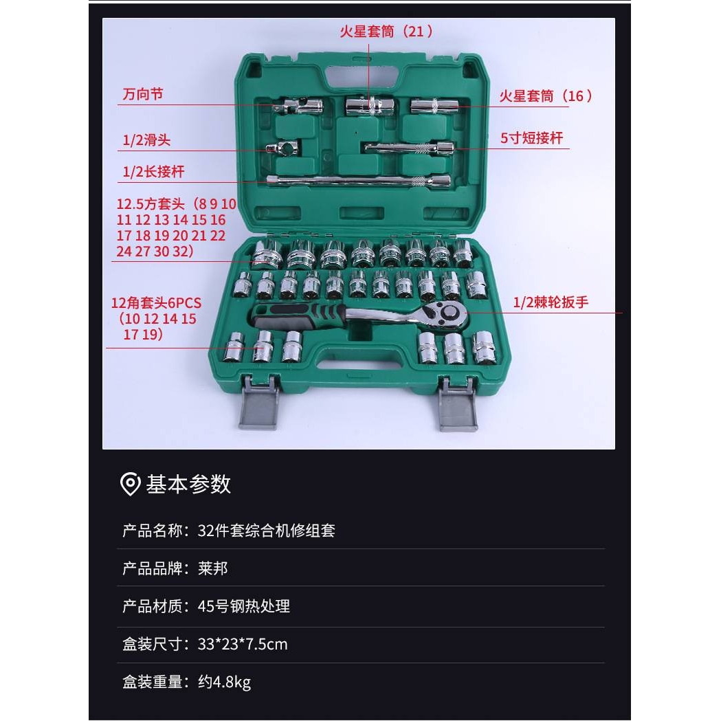 32件套1/2综合机修组套筒扳手套装工具24齿棘轮72齿大飞汽修组套
