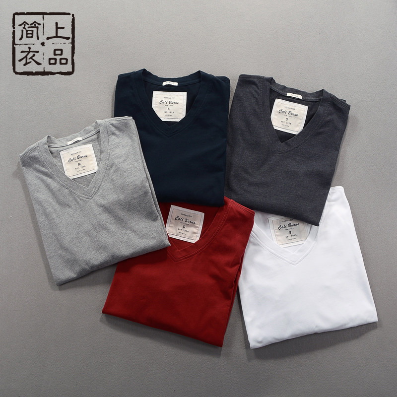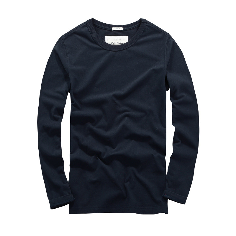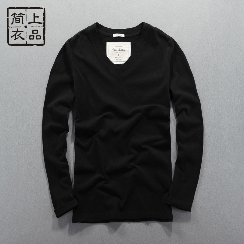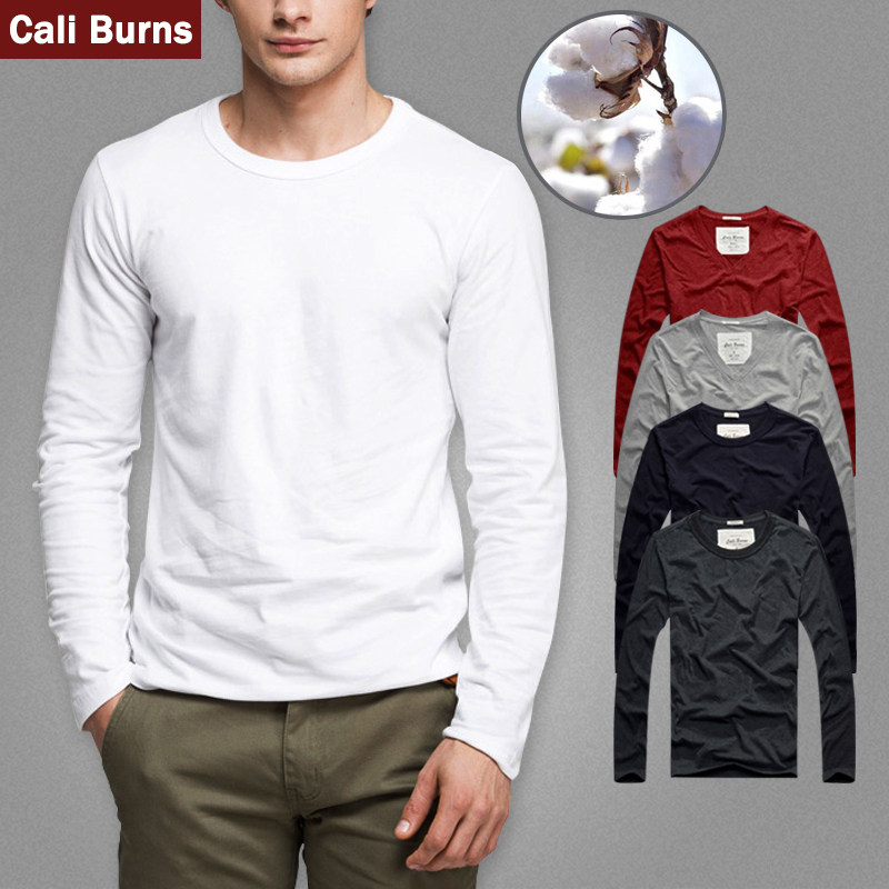 秋季新款af长袖T恤男修身简约圆领纯棉纯色打底衫t恤全棉白色上衣