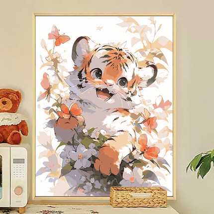卡通动物diy数字油画装饰画