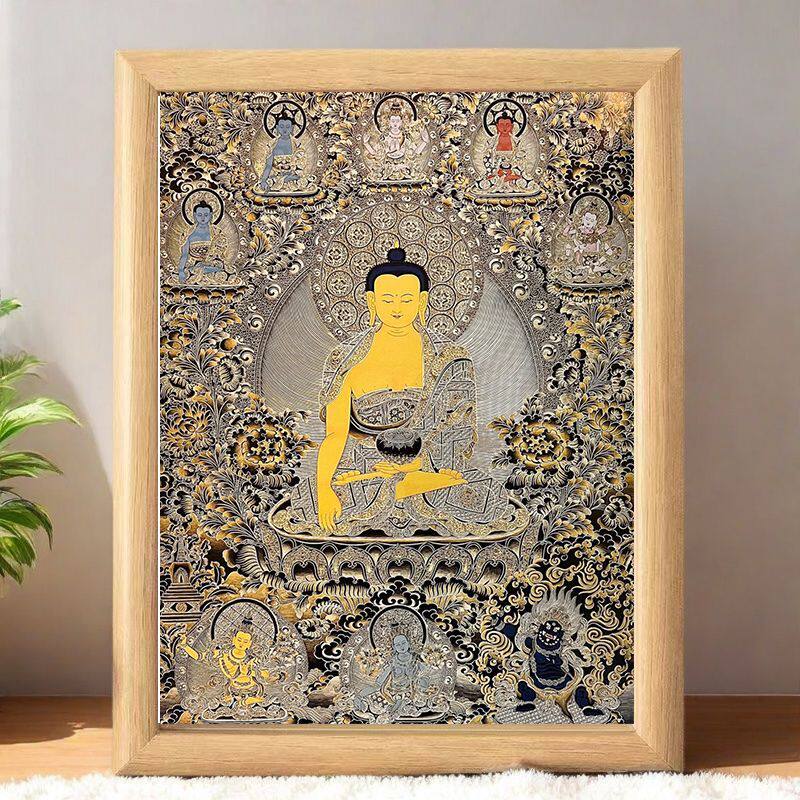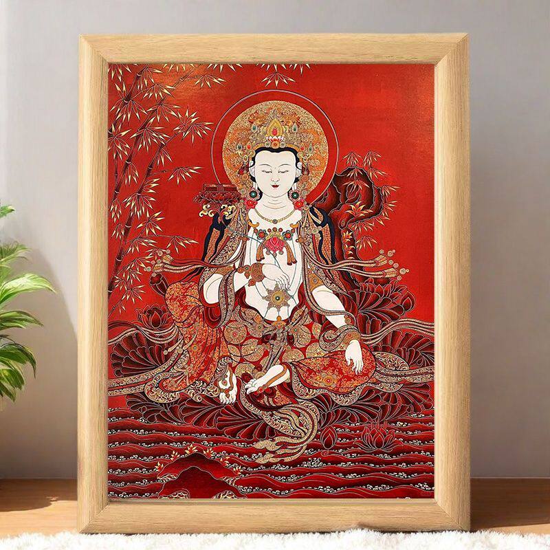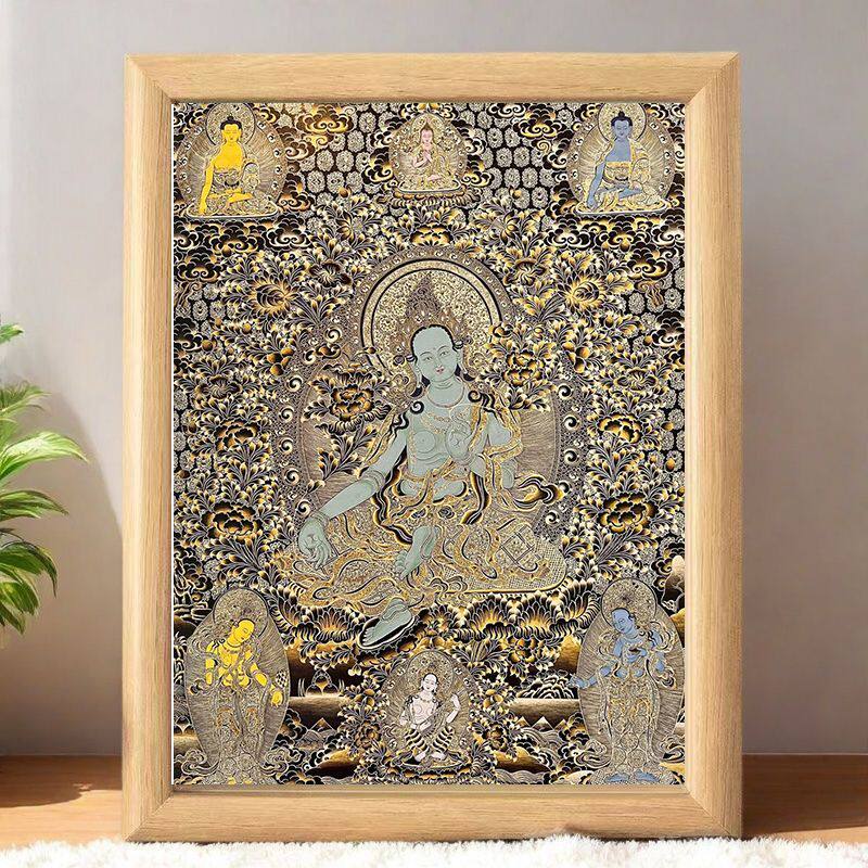 唐卡摆台藏族财神摆件桌面供俸相框保佑招财健康家庭和睦镇宅画挂