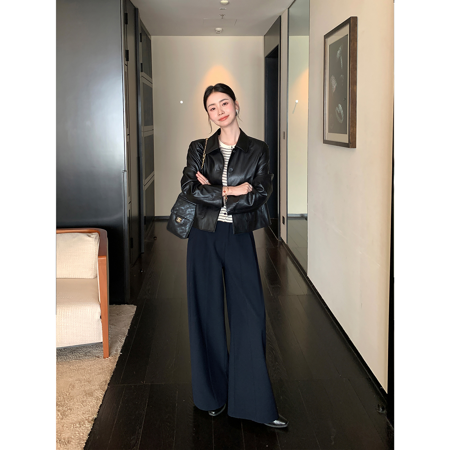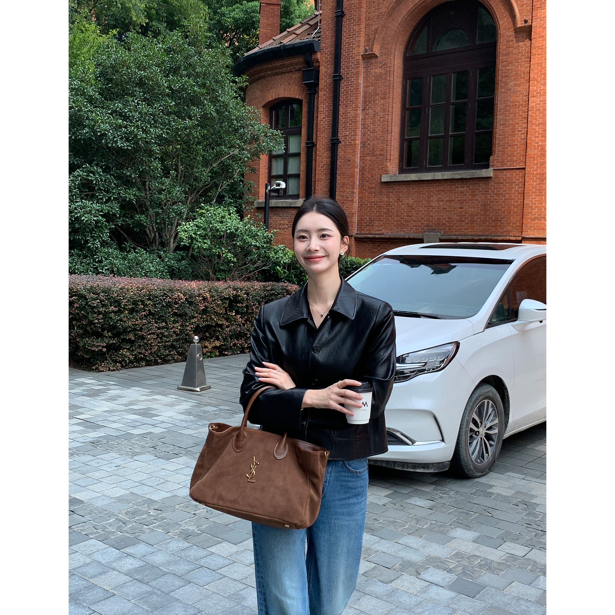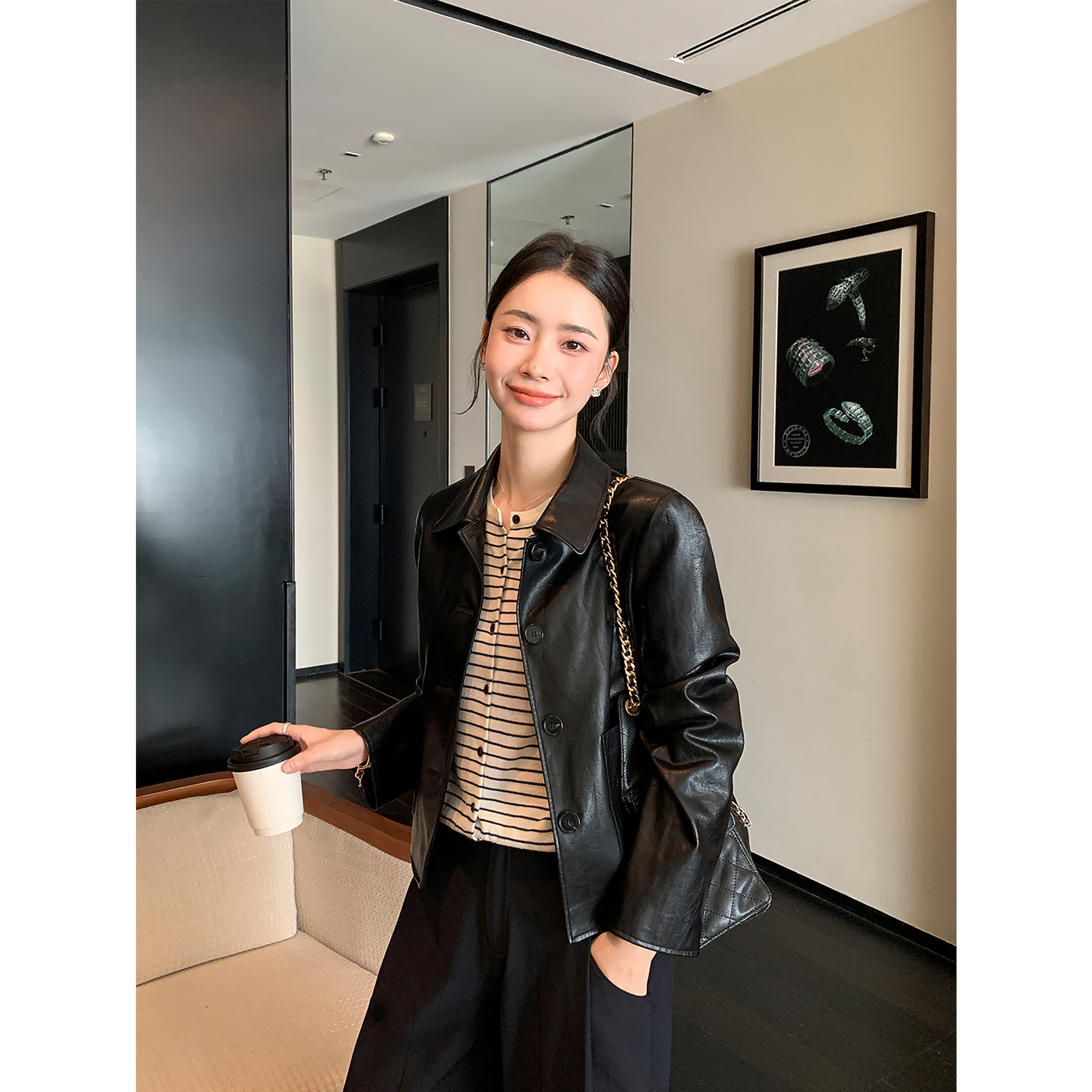 Maven Lin 高品质肌理皮革复古pu皮衣外套女休闲短款夹克机车服