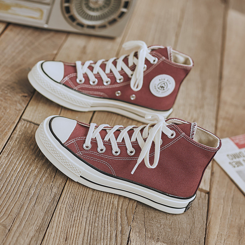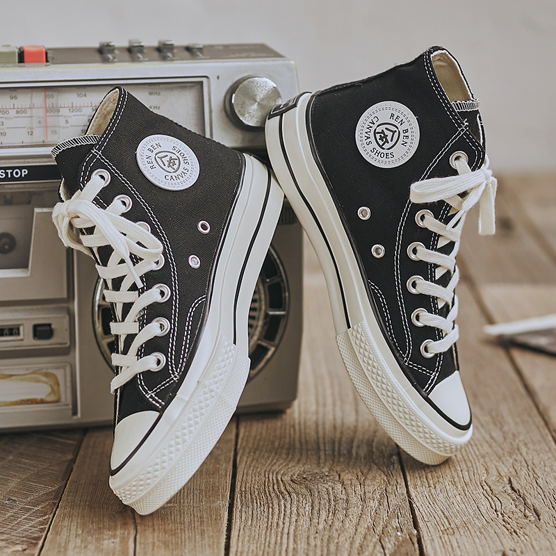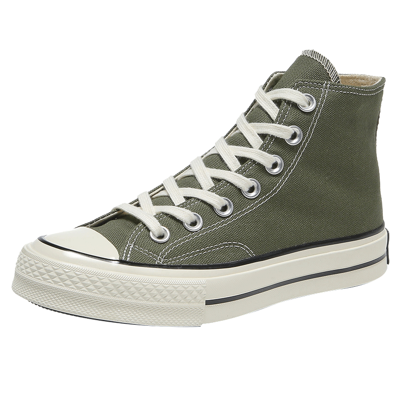 人本春秋帆布鞋男橄榄绿网红男青少年高帮鞋学生大童潮流百搭板鞋