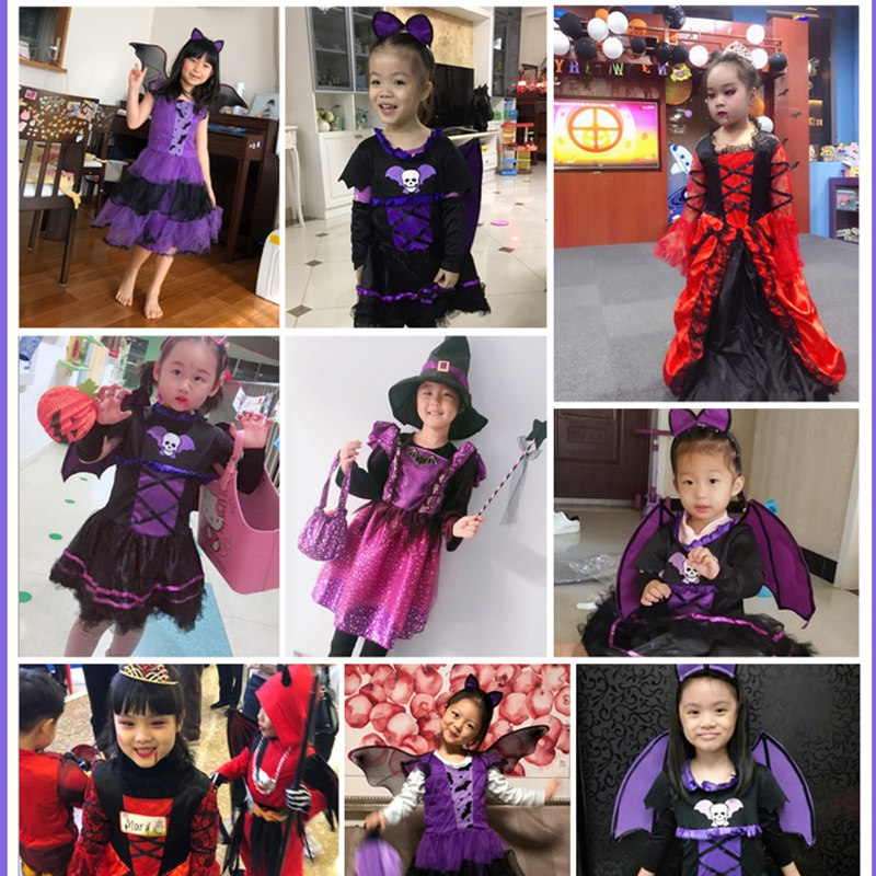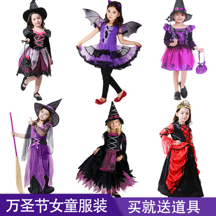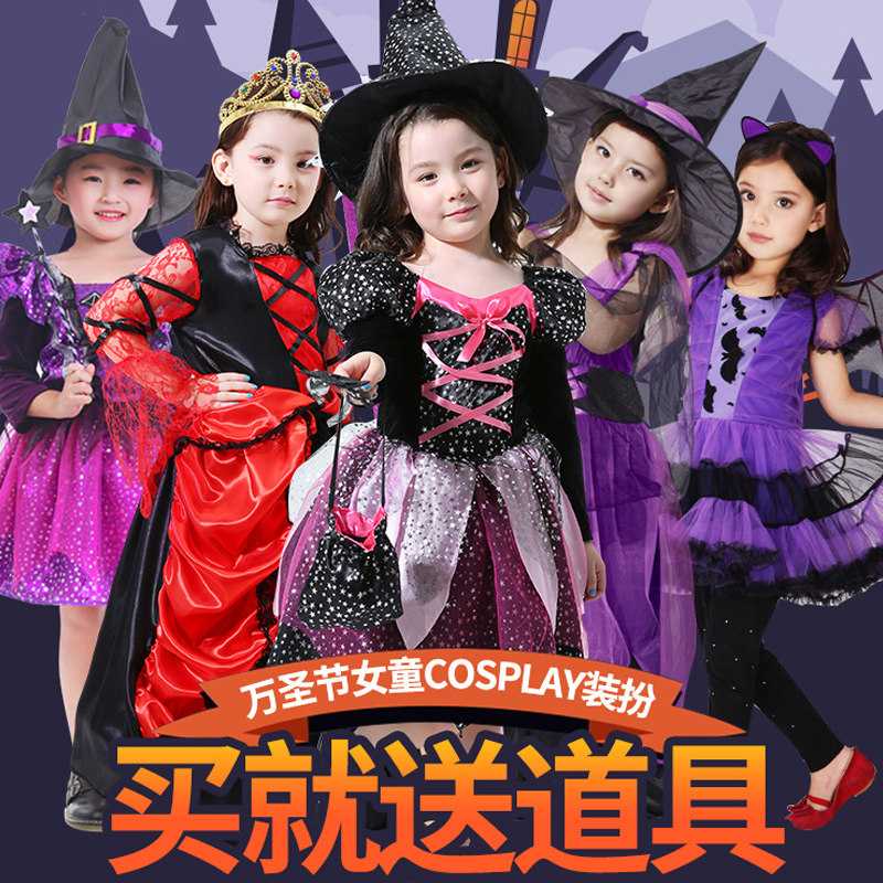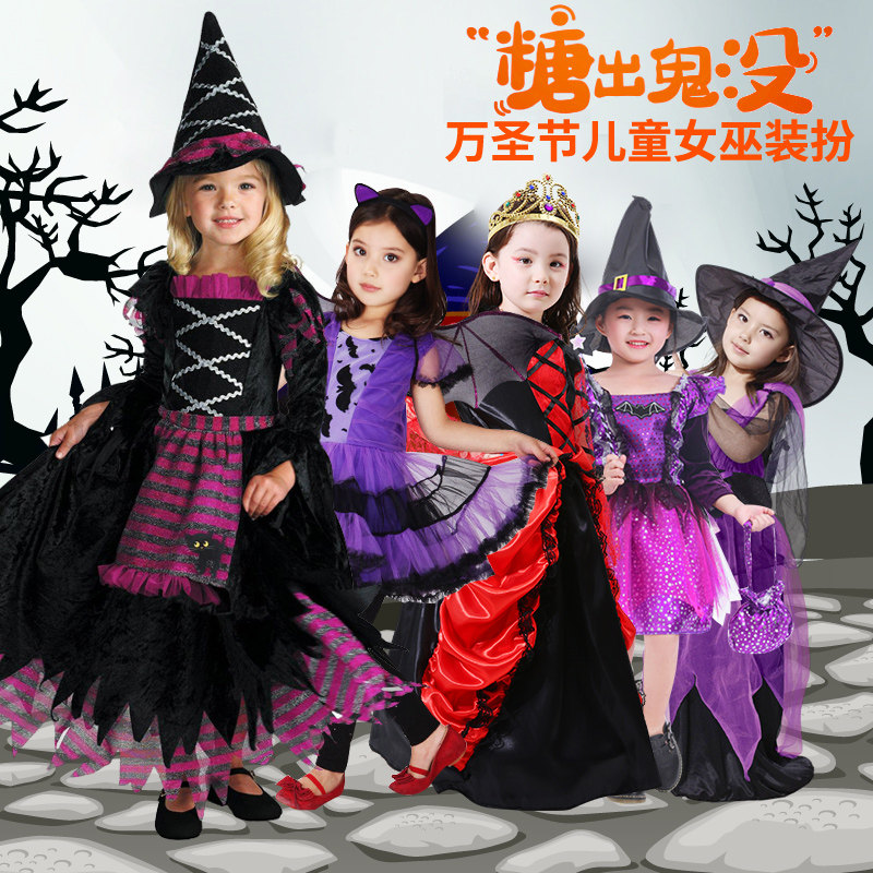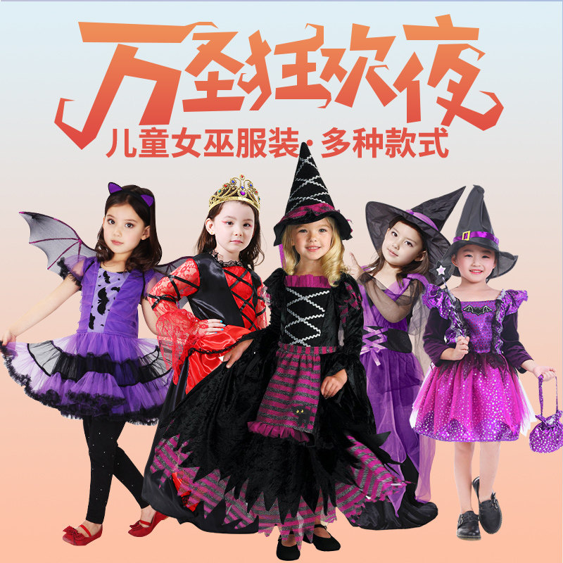 万圣节儿童服装cos服饰女巫裙子女装衣服装扮女童巫婆演出服女孩