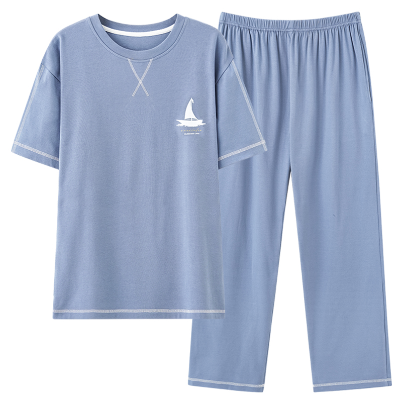 浪莎睡衣男士夏季面料纯棉短袖长裤家居服男款夏天薄款大码套装
