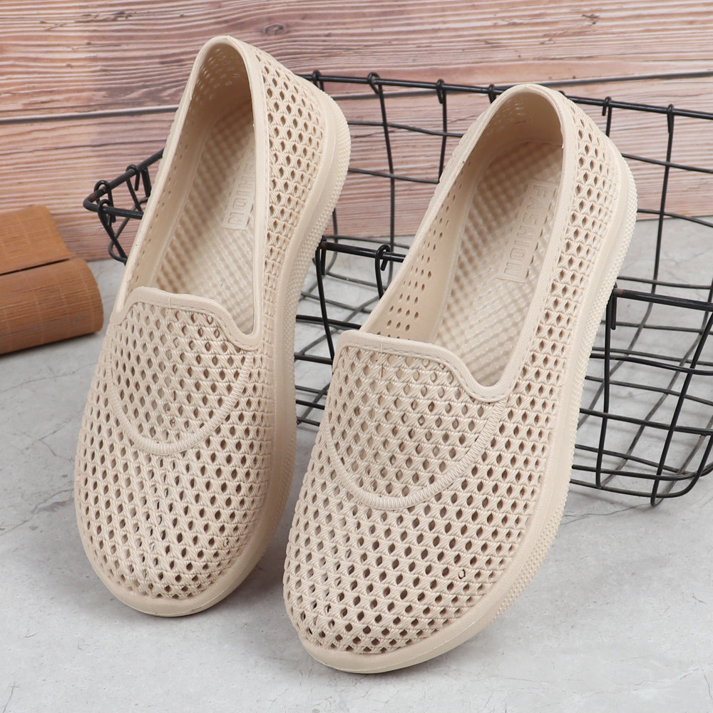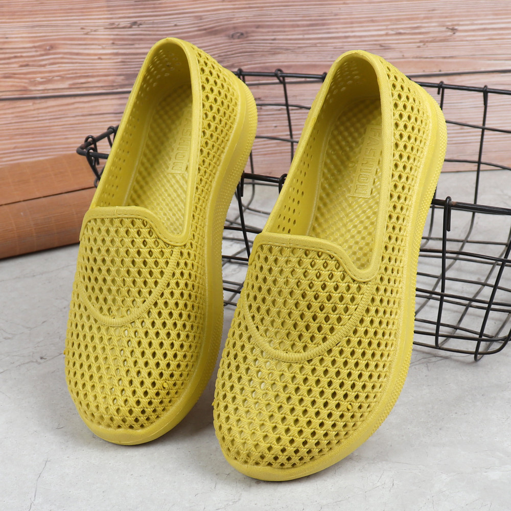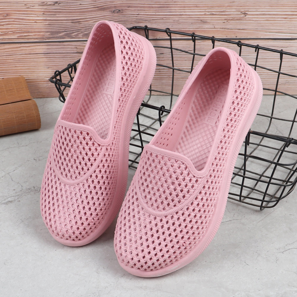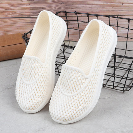 夏季透气浅口凉鞋女防滑中老年妈妈鞋塑胶防水洞洞鞋白色医护士鞋