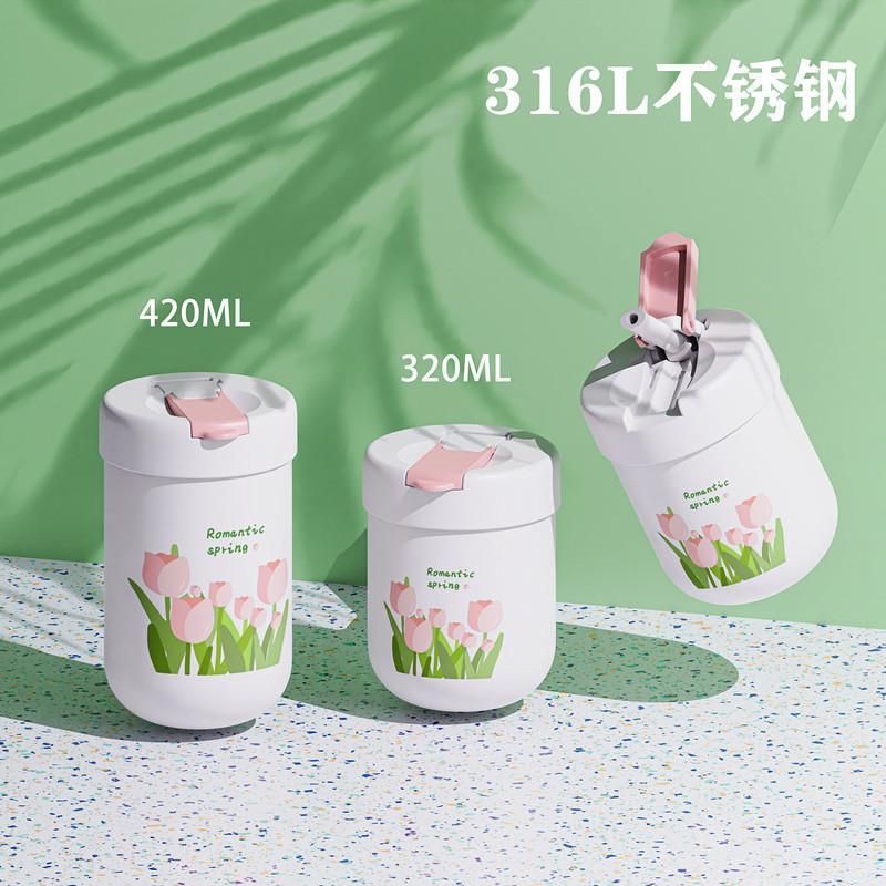 小巧便携咖啡杯不锈钢吸管保温杯子女生花茶水杯随手杯礼品logo