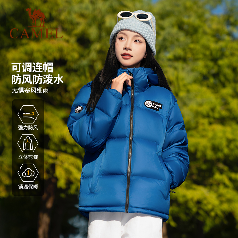 圣诞礼物骆驼熊猫女装短款羽绒服女冬季新款好看羽绒外套面包服棕