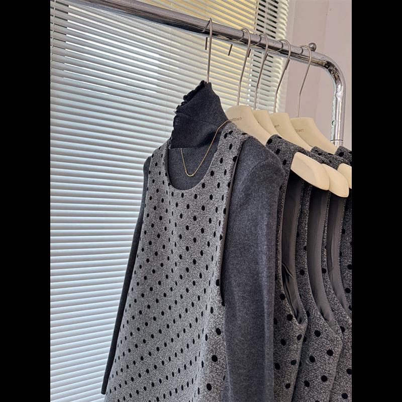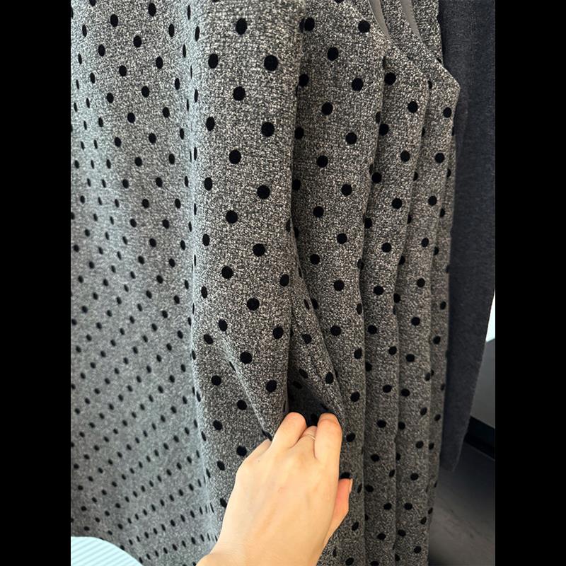 秋冬厚款复古高腰A字有口袋毛呢波点连衣裙 中长款外穿灰色背心裙