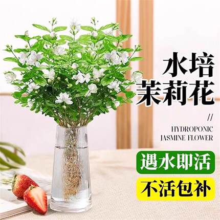 茉莉花水培植物盆栽带花苞办公室内桌面好养懒人鲜花绿植水养花卉
