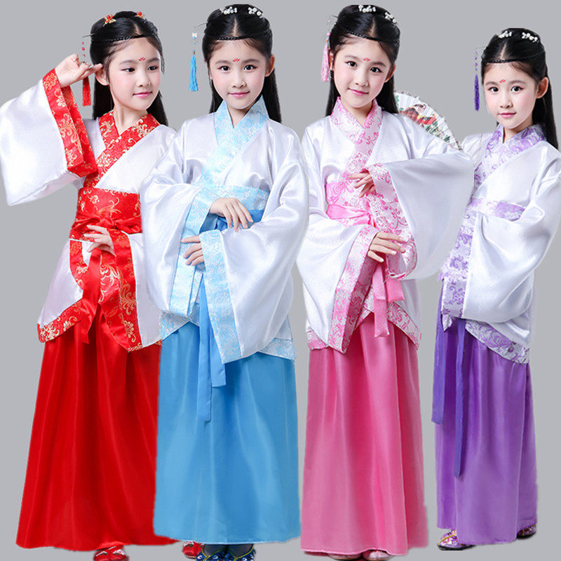 儿童古装小七仙女公主裙古筝演出服唐装汉服唐朝贵妃女童幼儿服装