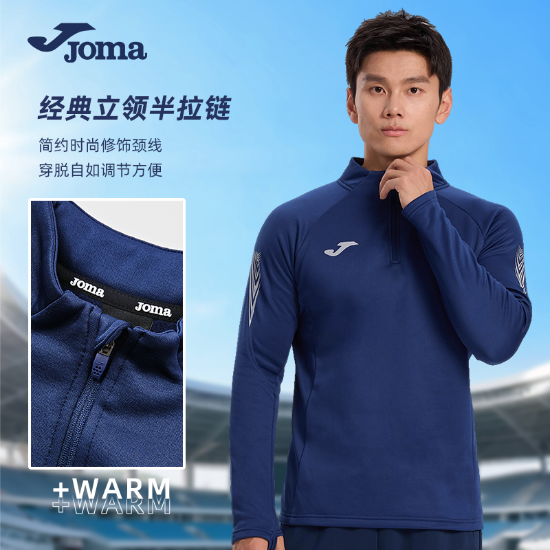 JOMA荷马运动卫衣加绒半拉链训练服t恤男女儿童跑步长袖套头衫冬