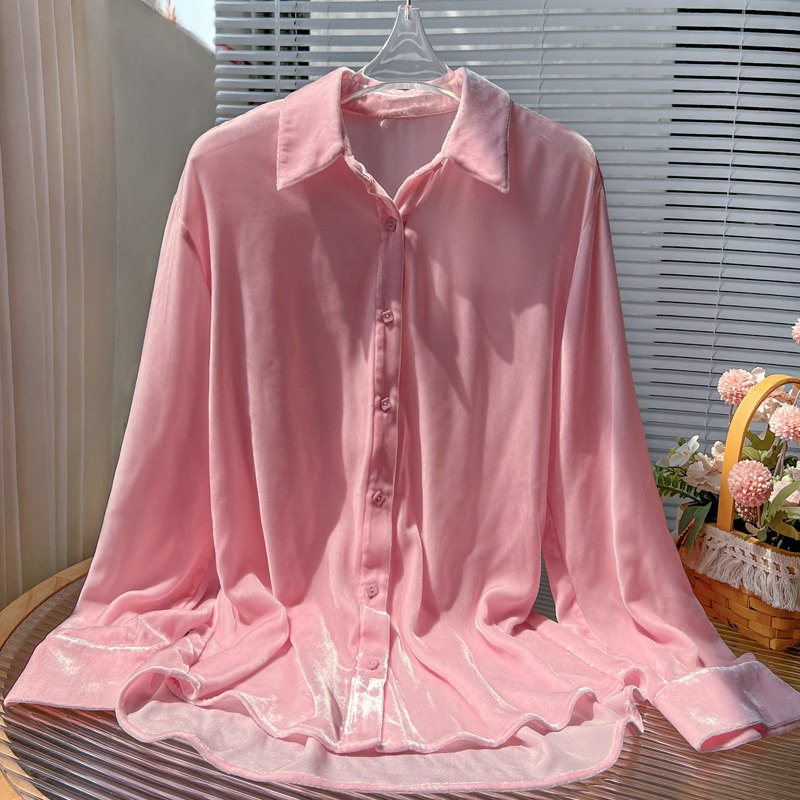 多巴胺穿搭轻柔丝绒衬衫女春秋冬桑蚕丝通勤内搭叠穿真丝亲肤衬衣
