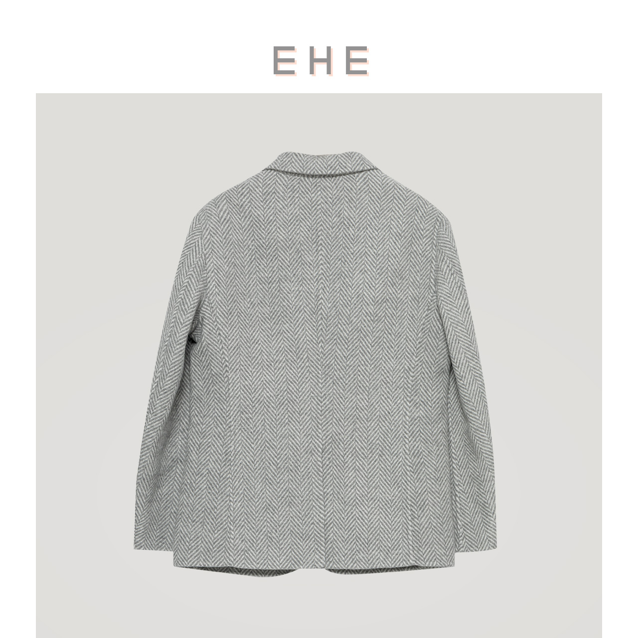 EHE男装 春夏新款灰色斜纹羊毛高级复古休闲双面呢单西男外套
