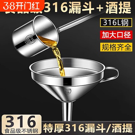 不锈钢漏斗食品级家用油漏斗酒提子316厨房304打酒器过滤网大口径