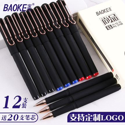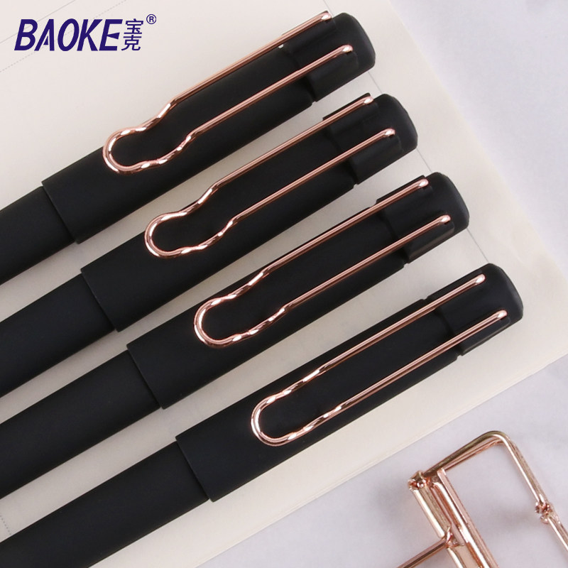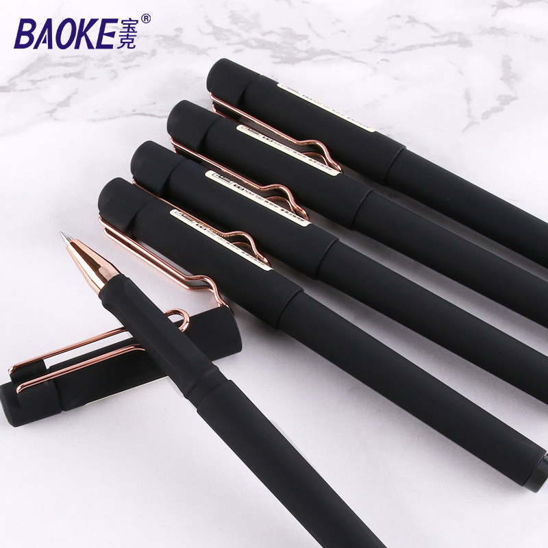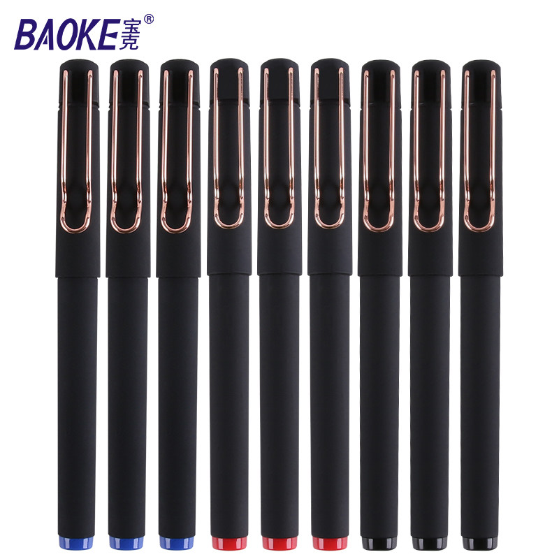 宝克中性笔0.5子弹头学生用黑水笔拔帽款商务办公中性笔镂空笔夹红笔碳素笔签字笔签单笔