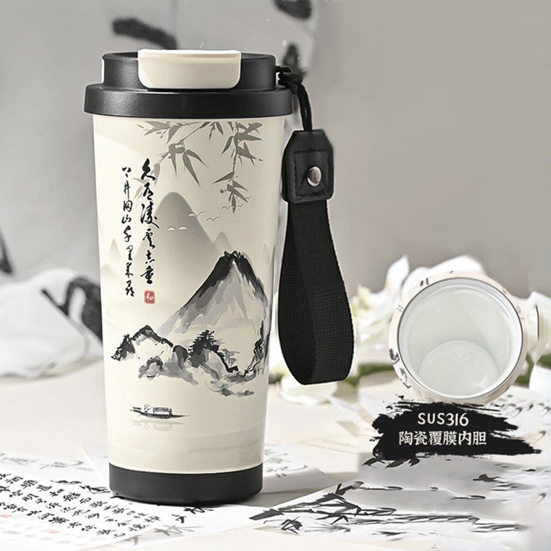 定制印LOGO保温杯陶瓷内胆咖啡杯订做刻字高颜值吸管水杯随行杯子